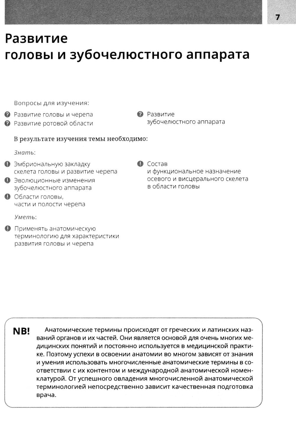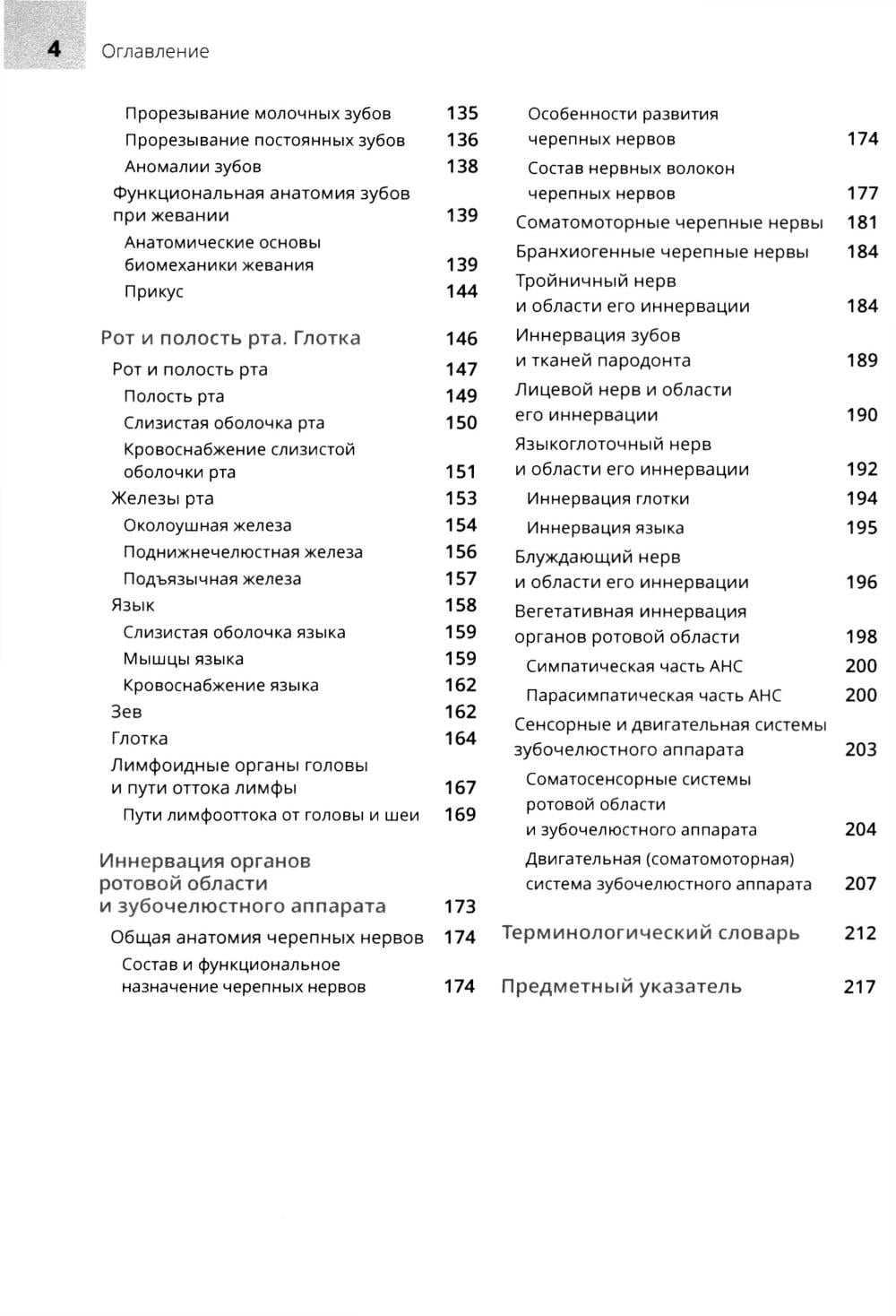 Особое внимание обращено на развитие полости рта, а также на кровоснабжение, лимфоотток и иннервацию расположенных в ней органов; детально излагается частная анатомия зубов. Все анатомические термины приведены в соответствии с Международной анатомической номенклатурой (FCAT, 1998).