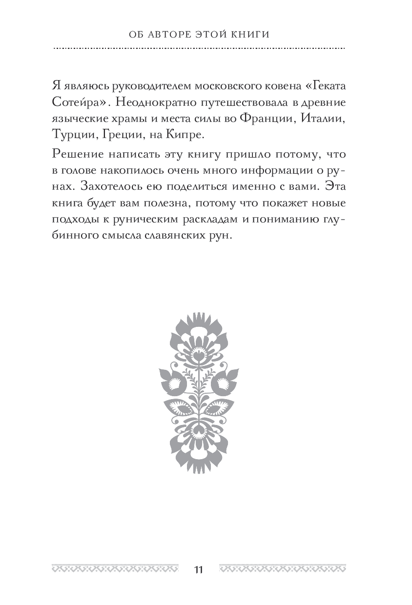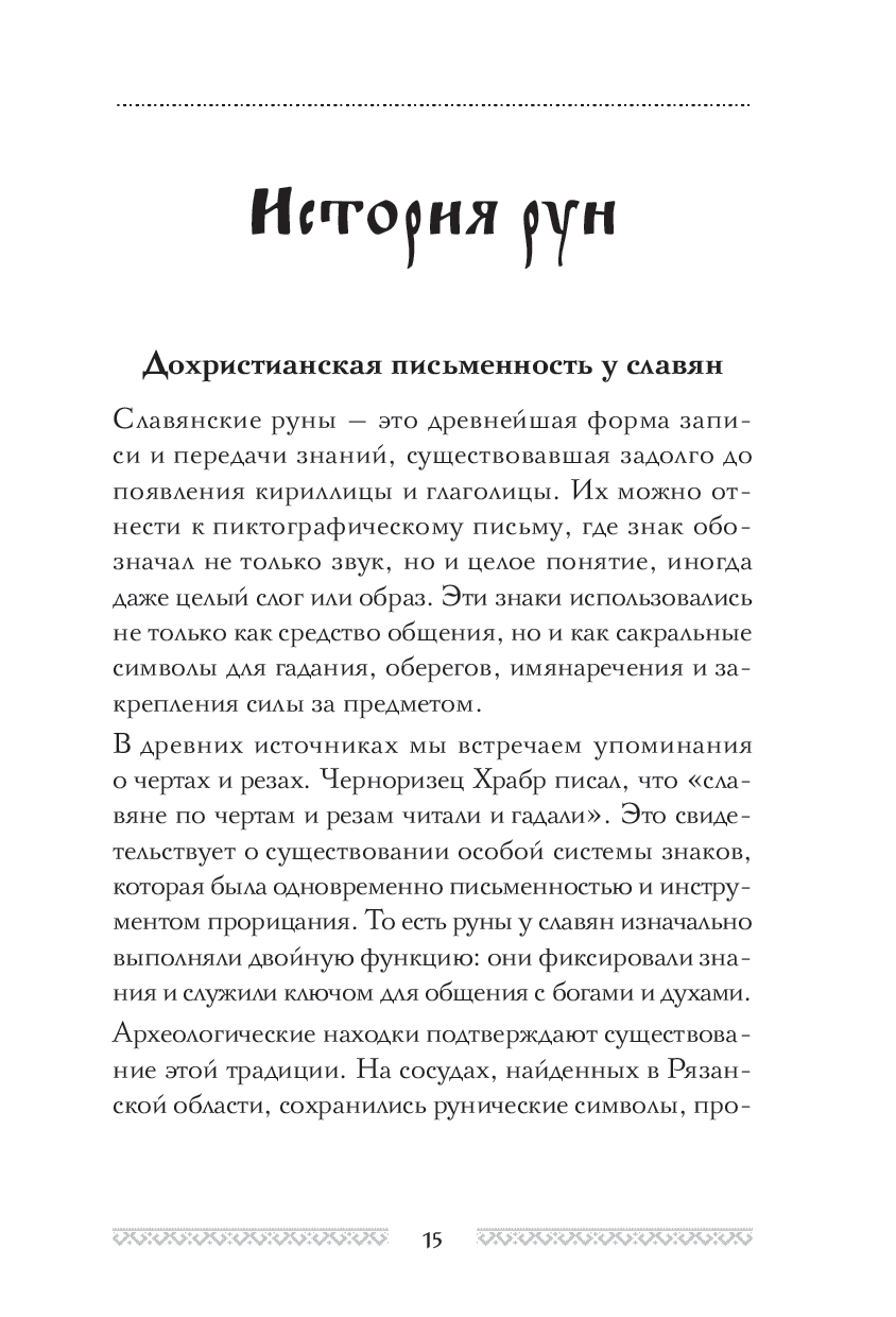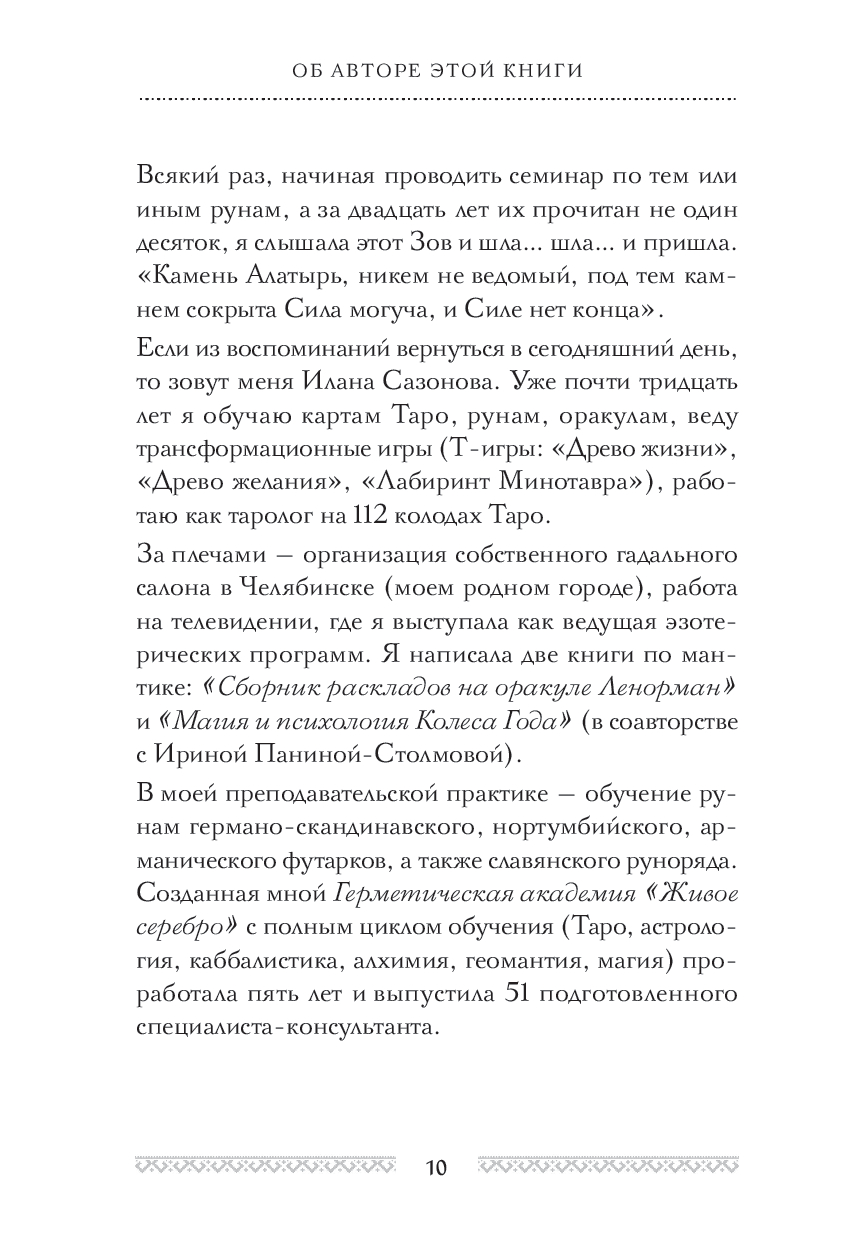 В этой книге, созданной Иланой Сазоновой, специалистом по мантическим системам и трансформационным играм, вы найдете подробное описание славянского рунического ряда, детальные толкования и магический потенциал каждой из 18 рун, а также практические рекомендации по изготовлению рун и проведению рунических ритуалов. Также вы познакомитесь с практикой "Руна дня" с использованием славянских рун и десятью основными руническими раскладами, каждый из которых сопровождается примером из практики автора.