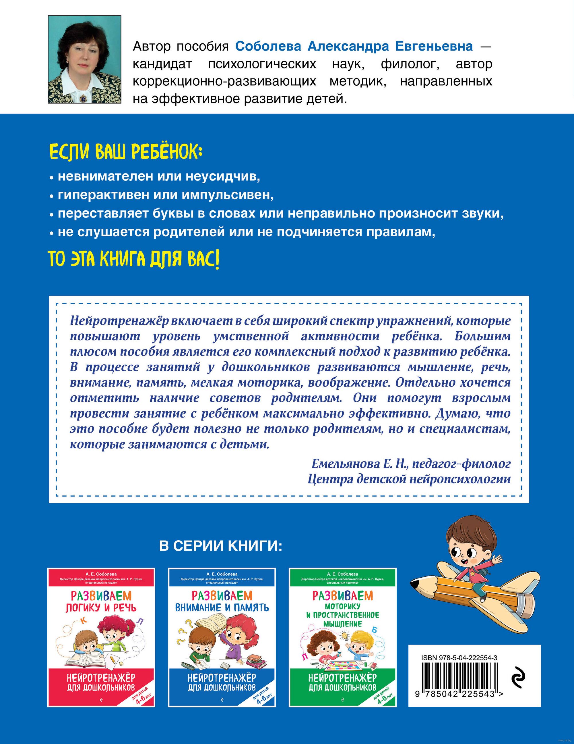 Цель пособия – развитие у ребенка внимания и памяти. В книге использован нейропсихологический подход с элементами игры, как ведущего вида деятельности дошкольника. Увлекательные интерактивные задания построены по принципу от простого к сложному. В конце каждого занятия имеются методические подсказки для родителей. Яркую красочную книгу с добрыми весёлыми картинками, сделанную на хорошей качественной бумаге, удобно брать с собой в дорогу, чтобы занять ребенка полезным делом. Адресовано неравнодушным родителям старших дошкольников.
