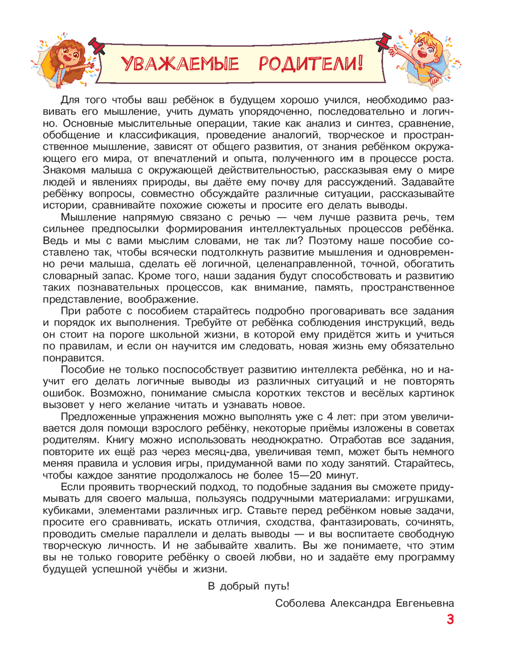 Цель пособия – развитие у ребенка мышления и речи. В книге использован нейропсихологический подход с элементами игры, как ведущего вида деятельности дошкольника. Увлекательные интерактивные задания построены по принципу от простого к сложному. В конце каждого занятия имеются методические подсказки для родителей.