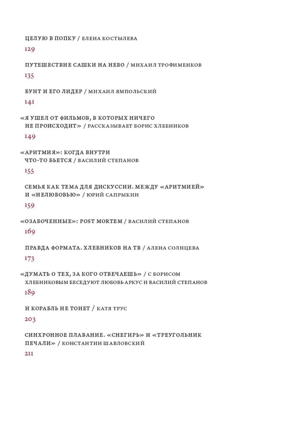 Издание дополняют беседы Бориса Хлебникова с Любовью Аркус, а также избранные статьи о фильмах и сериалах режиссера, написанные для "Сеанса".