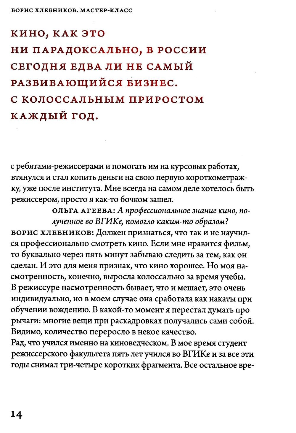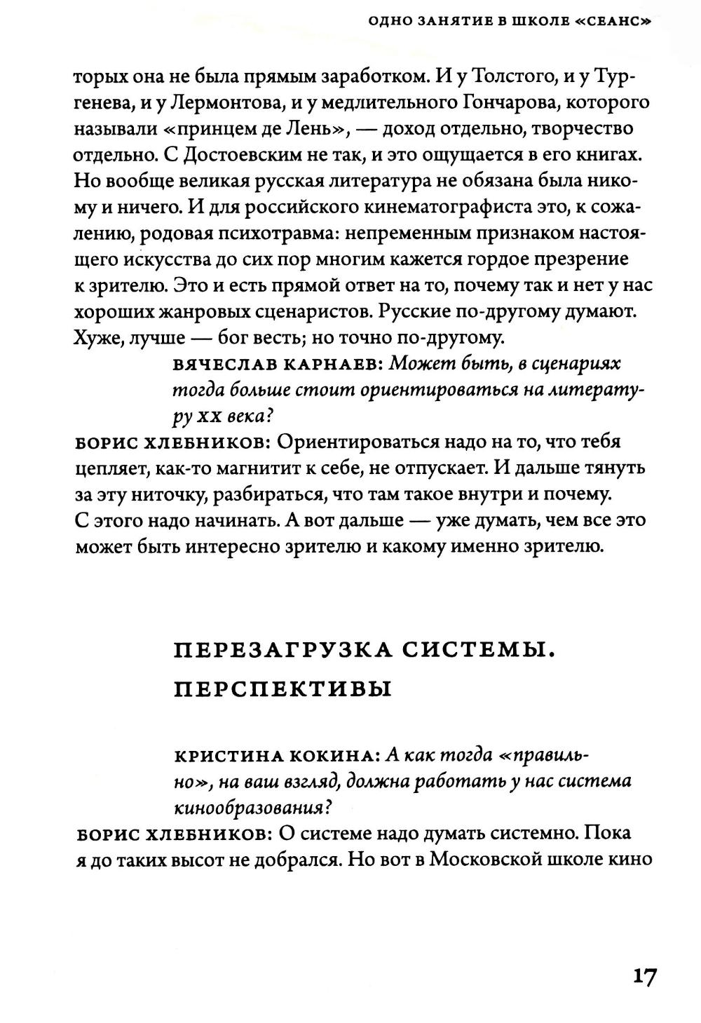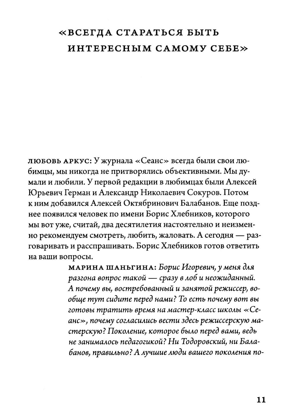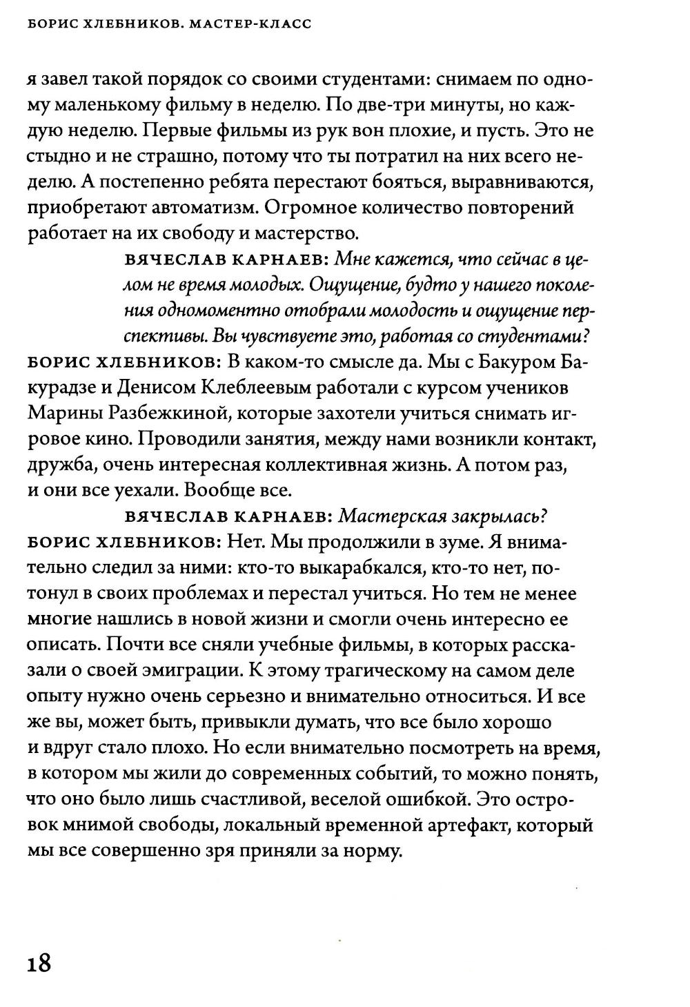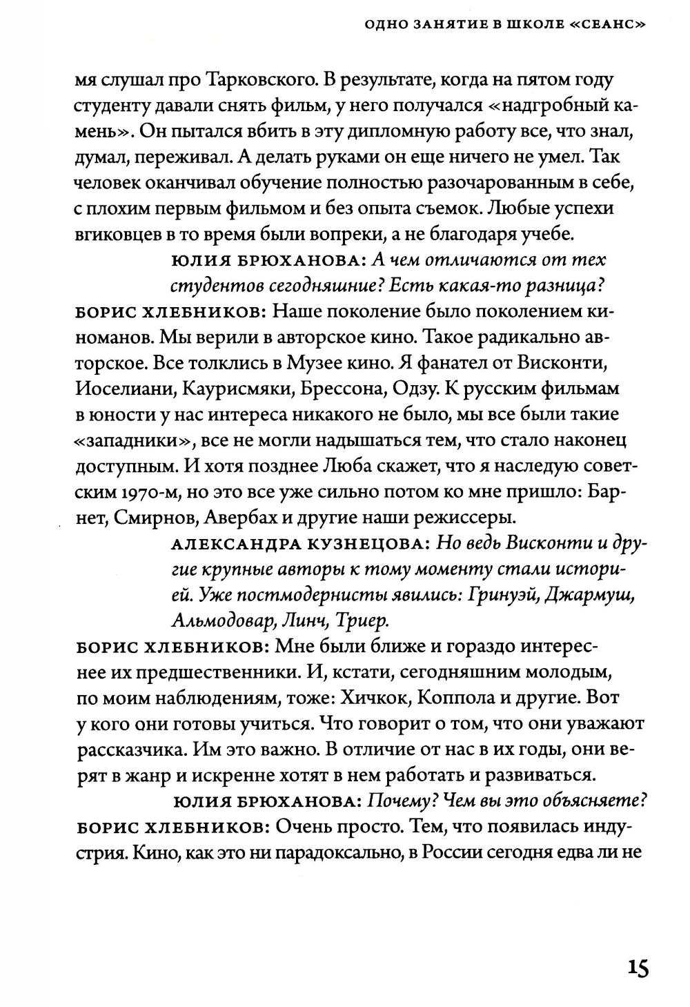 В основе этой серии книг – мастер-классы онлайн-школы "Сеанс". На этот раз с нашими студентами беседует один из любимых и постоянных героев журнала "Сеанс", а с недавнего времени один из мастеров нашей школы – режиссер Борис Хлебников.