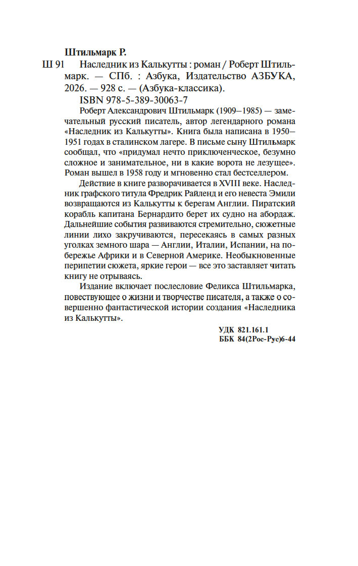 Роберт Александрович Штильмарк (1909-1985) – замечательный русский писатель, автор легендарного романа "Наследник из Калькутты". Книга была написана в 1950-1951 годах в сталинском лагере. В письме сыну Штильмарк сообщал, что «придумал нечто приключенческое, безумно сложное и занимательное, ни в какие ворота не лезущее». Роман вышел в 1958 году и мгновенно стал бестселлером.