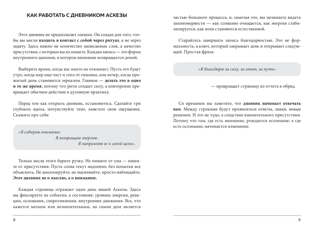 Удобный формат дневника включает 3 Аскезы на 21 день, что научит контролировать свою энергию и внутреннюю силу через дисциплину и осознанный отказ от вредных пристрастий.