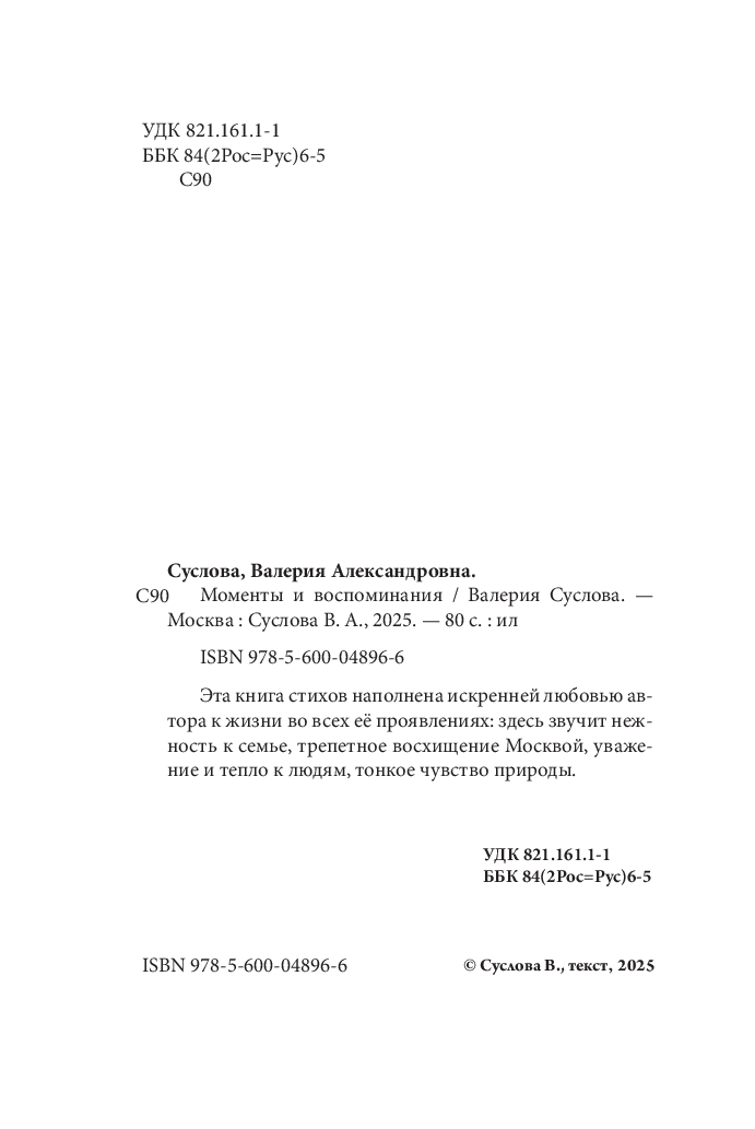 Эта книга стихов наполнена искренней любовью автора к жизни во всех её проявлениях: здесь звучит нежность к семье, трепетное восхищение Москвой, уважение и тепло к людям, тонкое чувство природы.