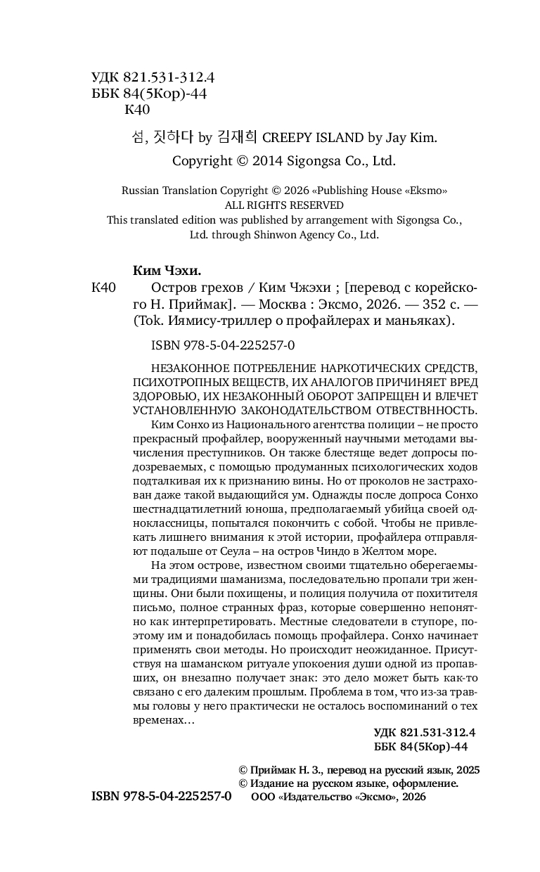 | Изготовитель | ООО «Издательство «Эксмо», Россия, 123308, город Москва, улица Зорге, дом 1, строение 1, этаж 20, каб 2013 |