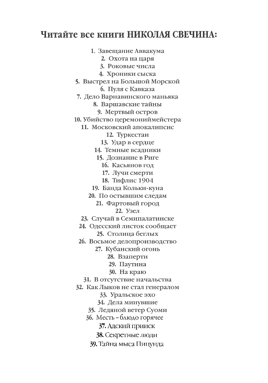 | Серия | Исторические детективы Николая Свечина |