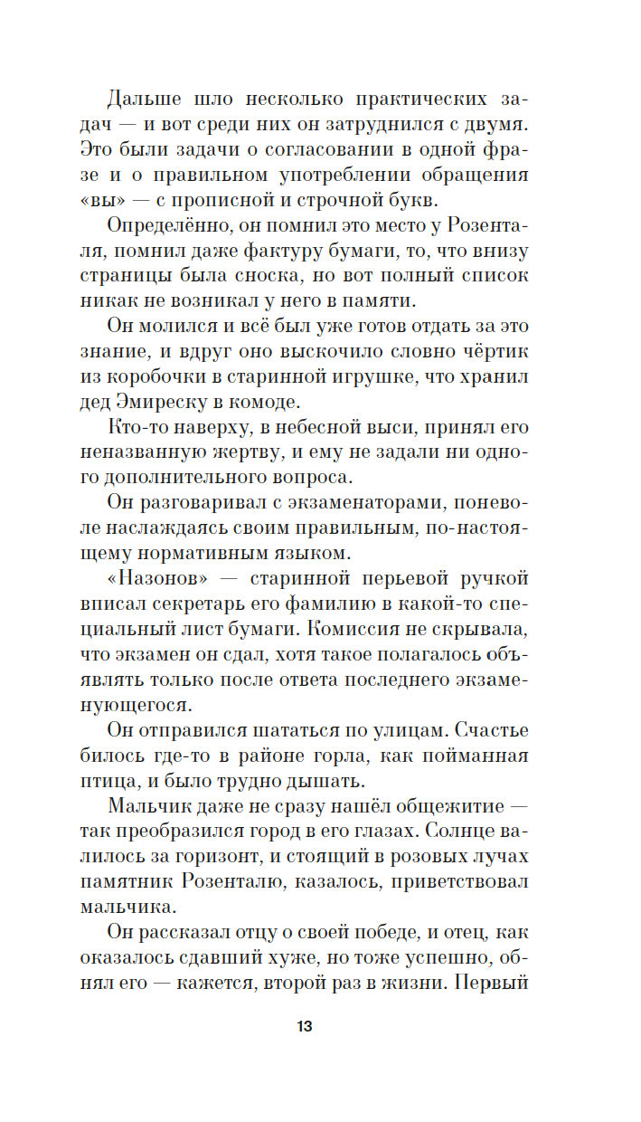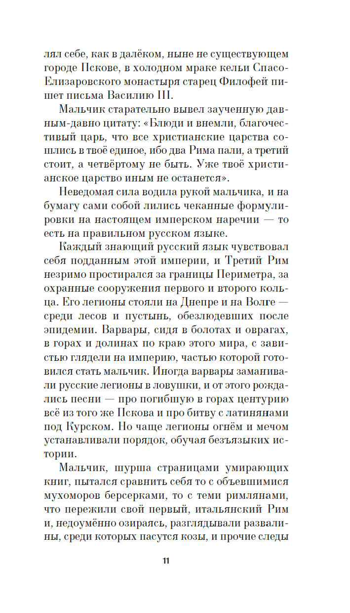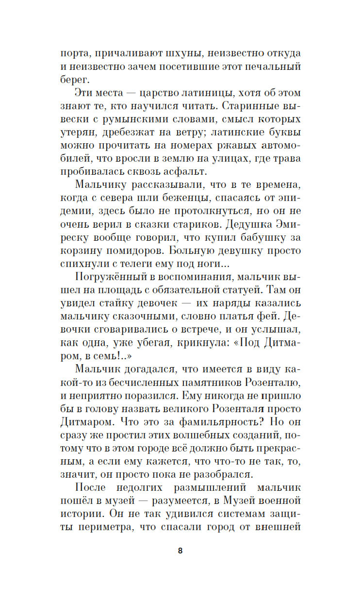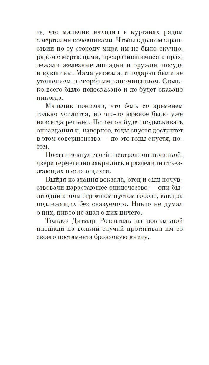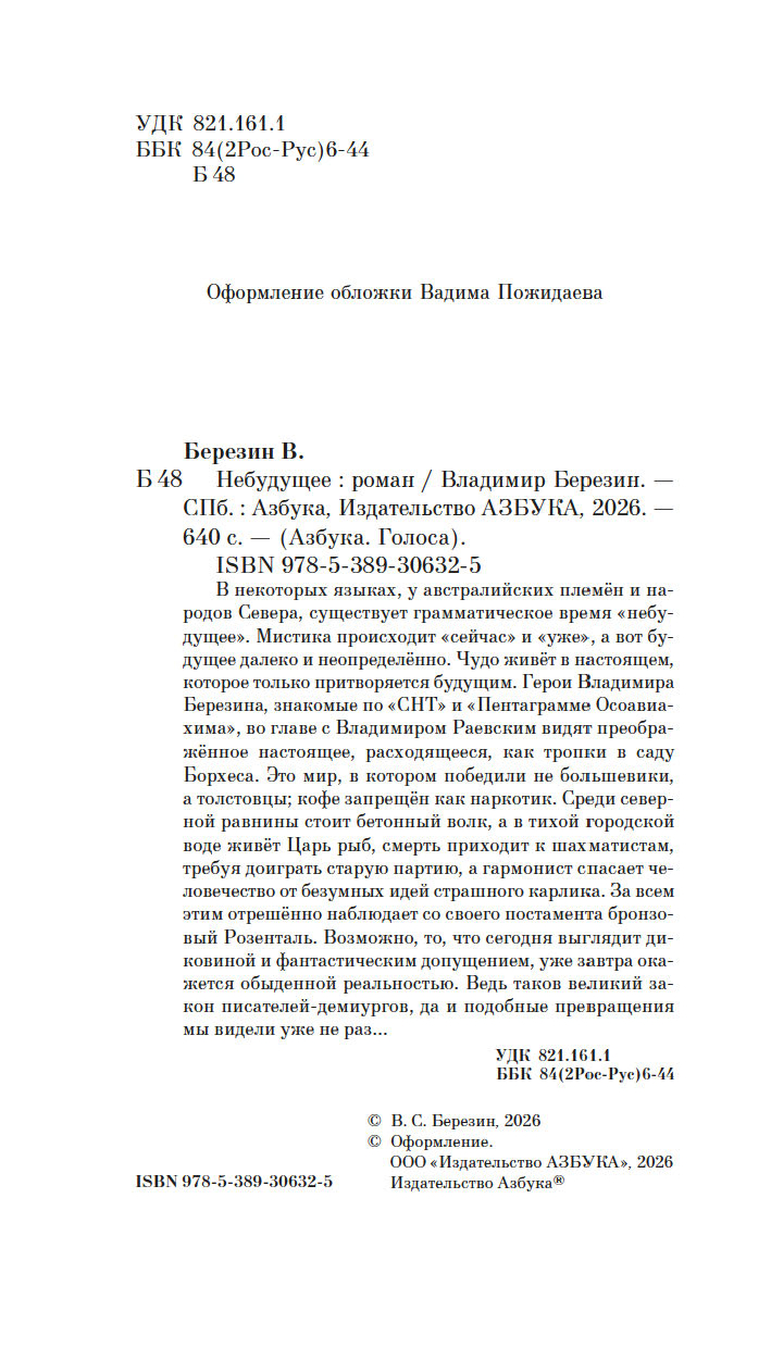 В некоторых языках, у австралийских племён и народов Севера, существует грамматическое время "небудущее". Мистика происходит "сейчас" и "уже", а вот будущее далеко и неопределённо. Чудо живёт в настоящем, которое только притворяется будущим. Герои Владимира Березина, знакомые по "СНТ" и "Пентаграмме Осоавиахима", во главе с Владимиром Раевским видят преображённое настоящее, расходящееся, как тропки в саду Борхеса. Это мир, в котором победили не большевики, а толстовцы; кофе запрещён как наркотик. Среди северной равнины стоит бетонный волк, а в тихой городской воде живёт Царь рыб, смерть приходит к шахматистам, требуя доиграть старую партию, а гармонист спасает человечество от безумных идей страшного карлика. За всем этим отрешённо наблюдает со своего постамента бронзовый Розенталь. Возможно, то, что сегодня выглядит диковиной и фантастическим допущением, уже завтра окажется обыденной реальностью. Ведь таков великий закон писателей-демиургов, да и подобные превращения мы видели уже не раз…