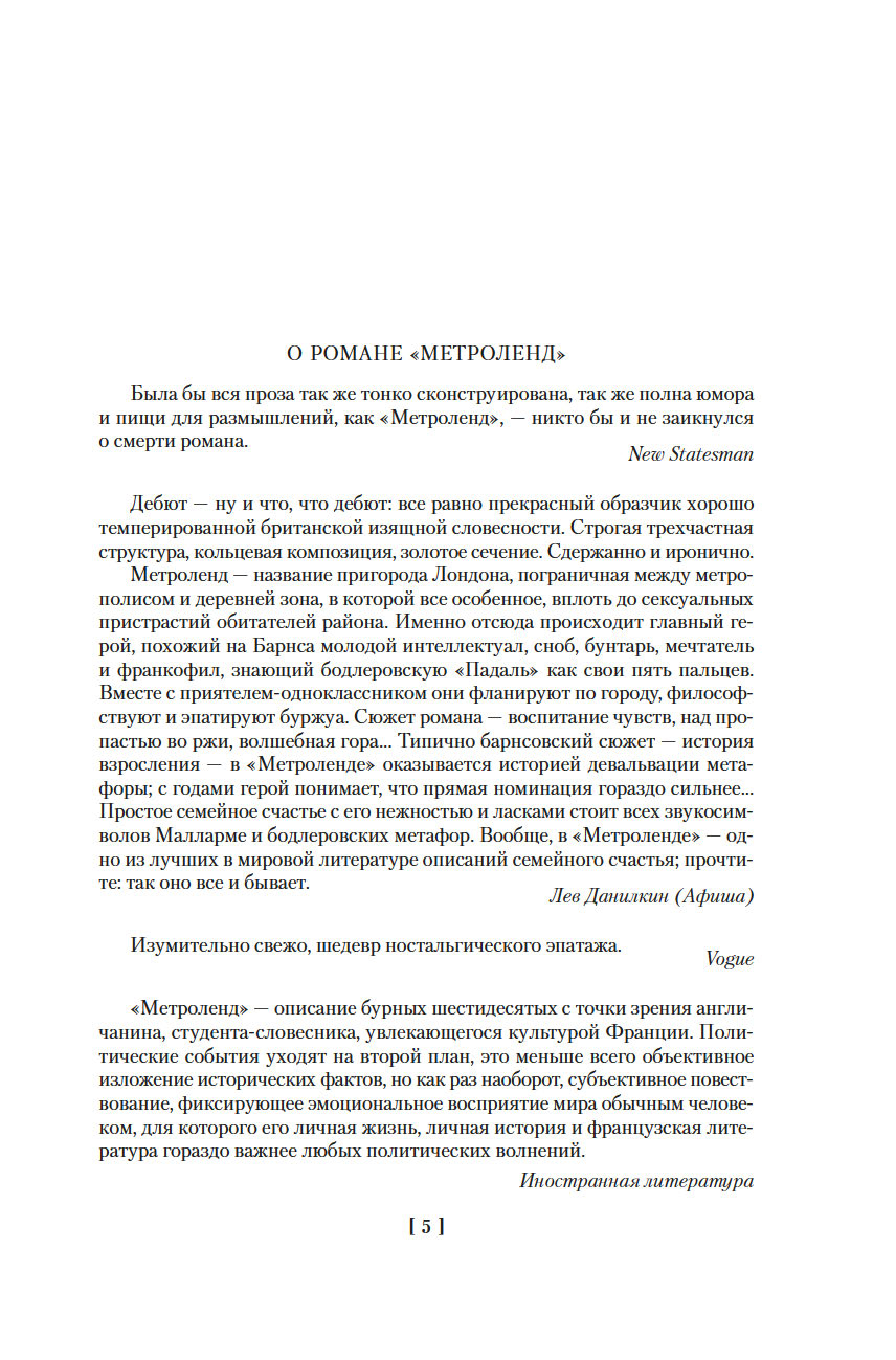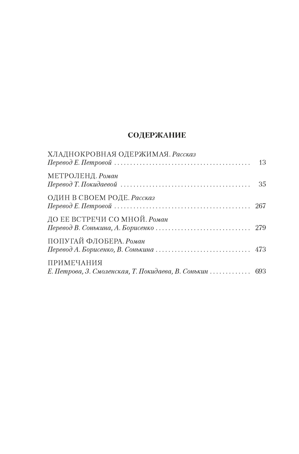 | Название в оригинале | Metroland. Before She Met Me. Flaubert's Parrot. Short Stories |