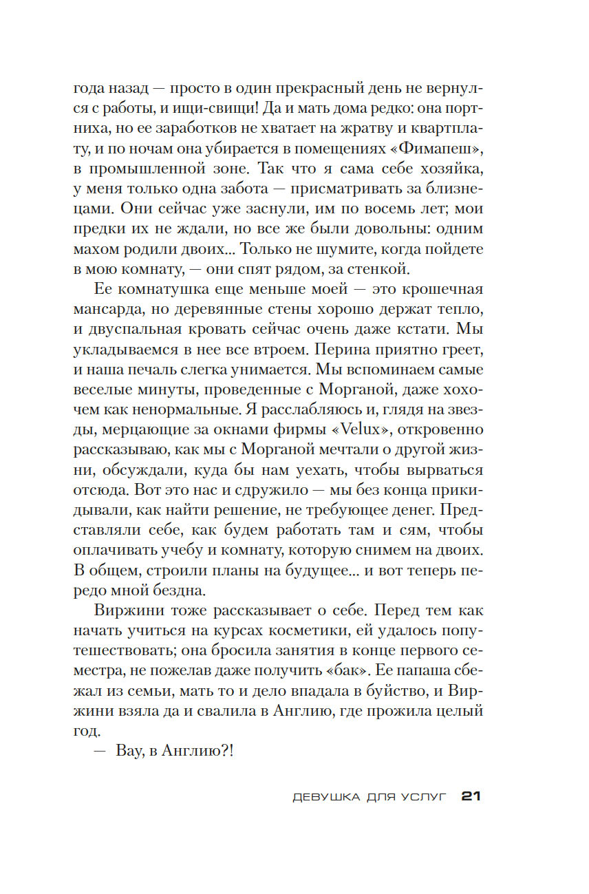 В частной резиденции в лондонском пригороде все выглядит идеальным. За гигантскими воротами прячутся пять роскошных особняков, в которых живут богатые, благополучные и благовоспитанные семьи с детьми и "девушками для услуг", нанятыми за рубежом и хлопочущими по хозяйству. Вчерашняя школьница Эммилу бежит сюда из захолустного городка в Бретани, устроившись такой вот работницей, – присматривать за детьми, прибираться в доме, учить английский, готовиться на журфак, узнавать жизнь. И первое время ей кажется, что она попала в рай.