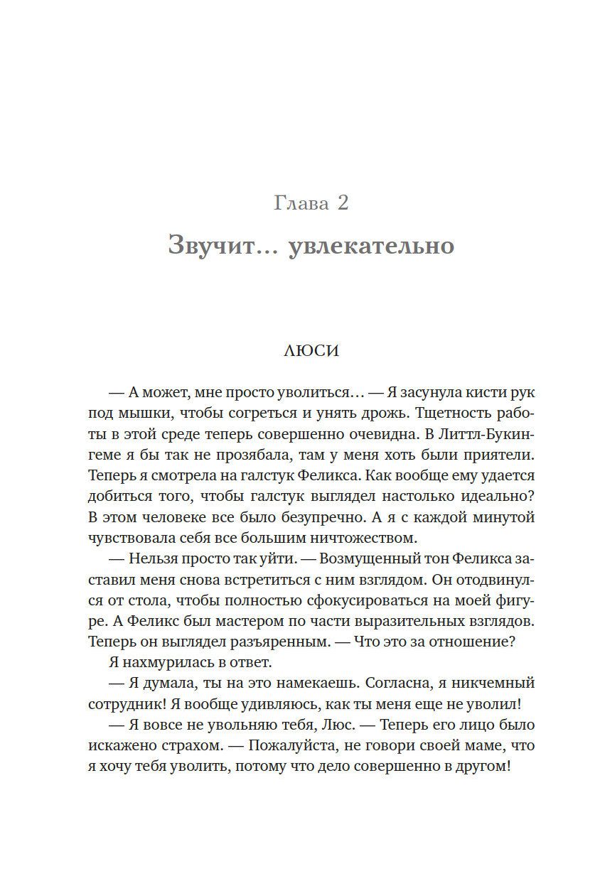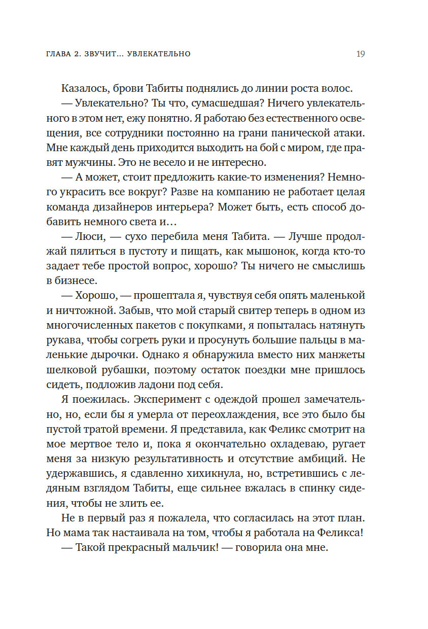 Да вот только, кажется, всё это совсем не для Люси. В офисе вечно уныло и холодно (особенно с тех пор, как ей запретили носить любимые свитера и угги), корпоративная культура – какие-то сплошные ложь и лицемерие, а секретарша из нее и вовсе никудышная, слишком уж Люси любит витать в облаках.