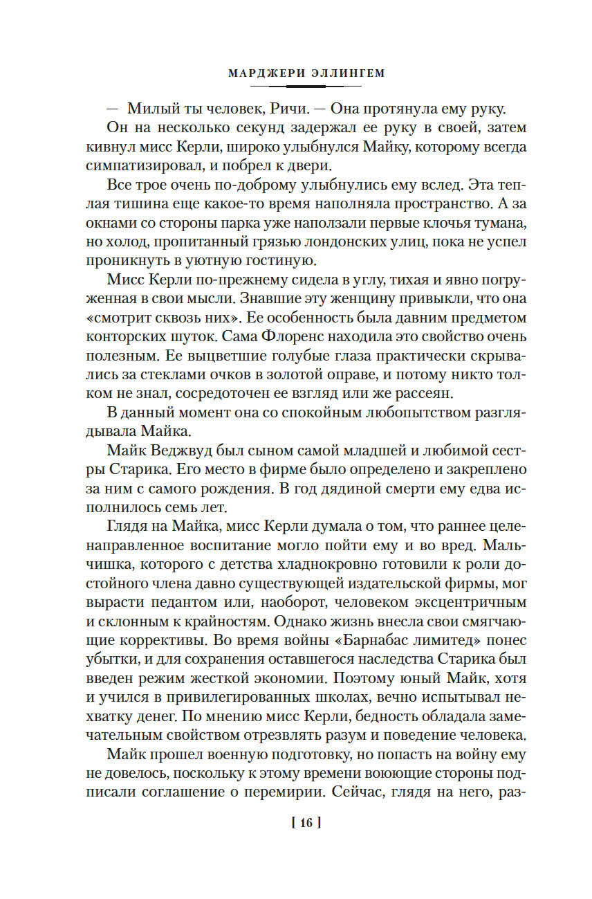 Забота о репутации фирмы всегда стояла у Джона Уиддоусона на первом месте. И двадцать лет назад, и сейчас, когда под ударом не только репутация, но и свобода его двоюродного брата. Мистер Уиддоусон предпочел блюсти честь возглавляемого им издательского дома. А вот мистер Альберт Кэмпион предпочел докопаться до сути этой трагедии, и не только потому, что брат издателя – его давний друг, которого хочется вызволить из беды.