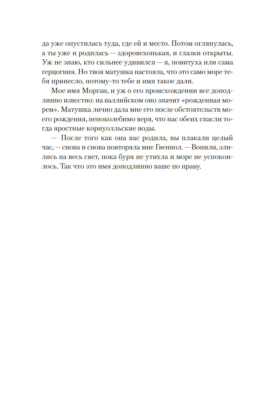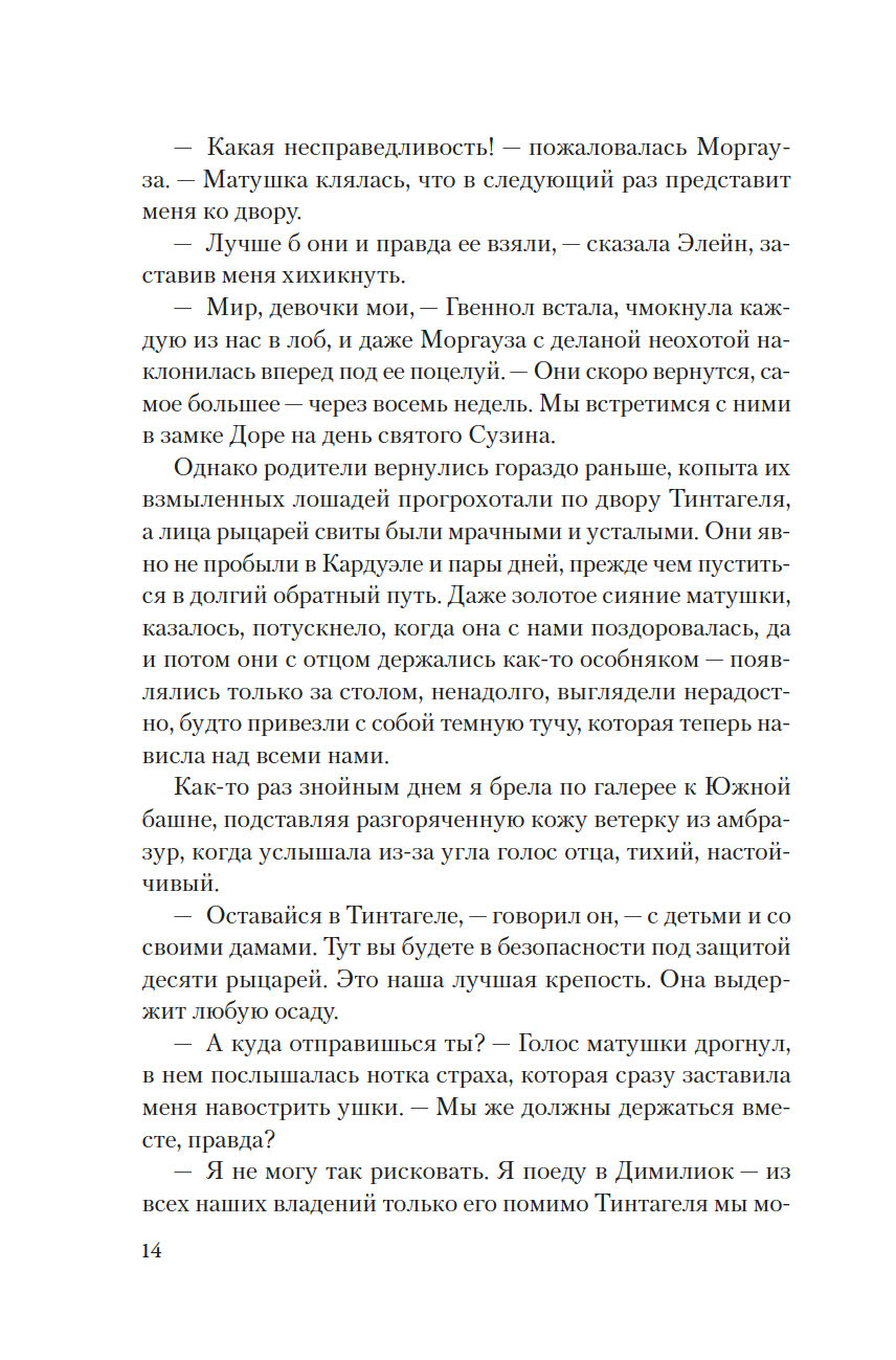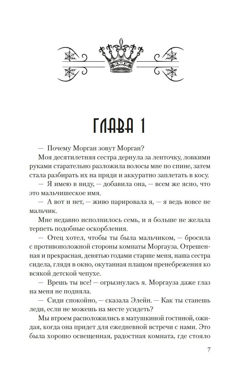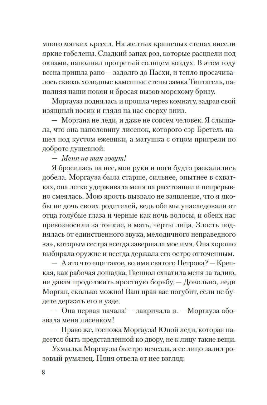 Она родилась в разгар бури, когда волны высоко вздымались над утесами замка Тинтагель, поэтому ей дали имя Морган, что по-валлийски означает "рожденная морем". Но когда девочке исполнилось семь лет, король Британии Утер Пендрагон коварно убил ее отца и силой взял в жены ее мать леди Игрейну. С той поры кончилось для Морган беззаботное детство. Что ждет ее впереди? Скорее всего, по воле отчима-деспота Морган, как и ее сестер, выдадут замуж, и девушке придется всю жизнь безропотно повиноваться своему супругу и повелителю… Однако неукротимый нрав Морган дает о себе знать: юная дева жаждет знаний, делает успехи в целительстве и даже обнаруживает в себе магические способности. Но чтобы стать по-настоящему свободной и счастливой, ей придется вынести немало суровых испытаний.