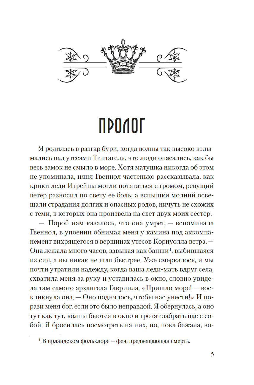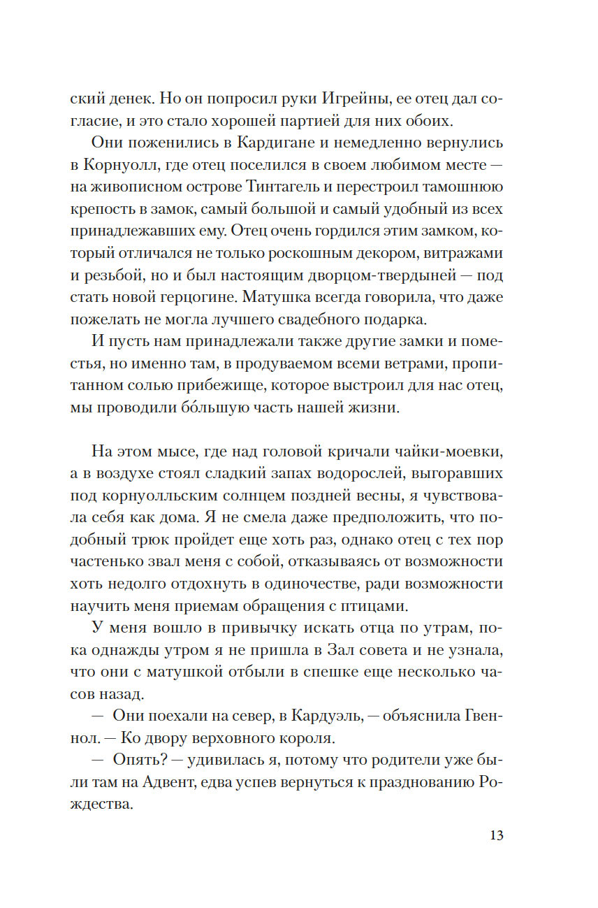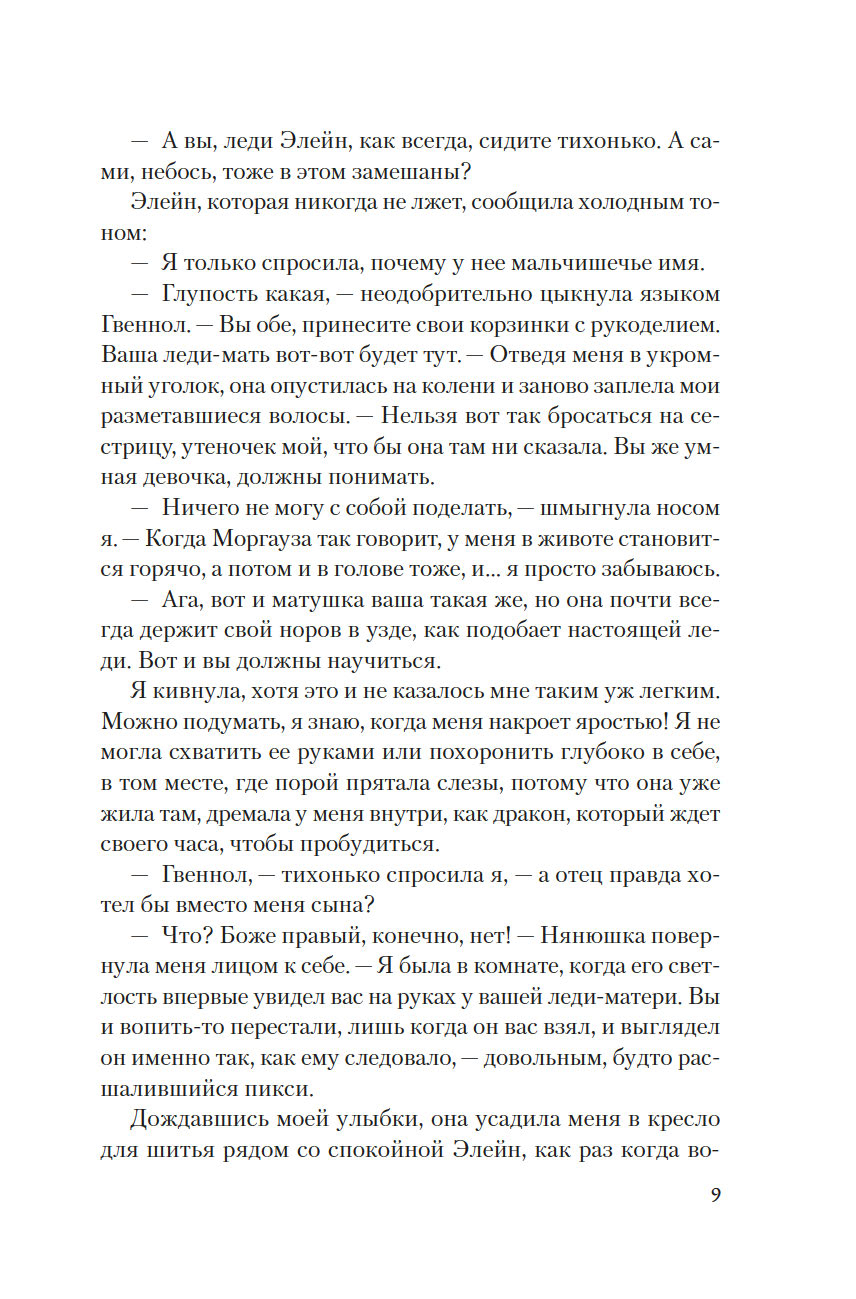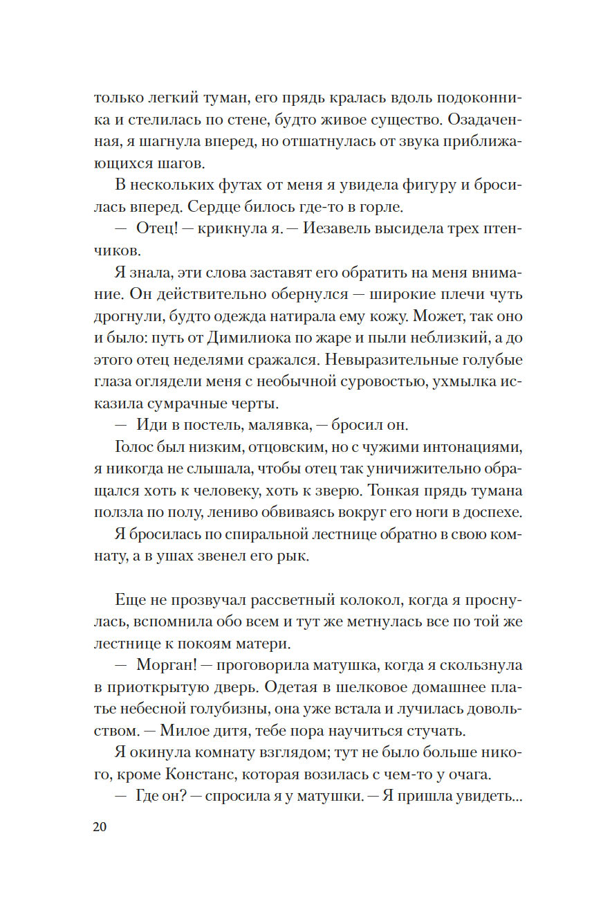 Она родилась в разгар бури, когда волны высоко вздымались над утесами замка Тинтагель, поэтому ей дали имя Морган, что по-валлийски означает "рожденная морем". Но когда девочке исполнилось семь лет, король Британии Утер Пендрагон коварно убил ее отца и силой взял в жены ее мать леди Игрейну. С той поры кончилось для Морган беззаботное детство. Что ждет ее впереди? Скорее всего, по воле отчима-деспота Морган, как и ее сестер, выдадут замуж, и девушке придется всю жизнь безропотно повиноваться своему супругу и повелителю… Однако неукротимый нрав Морган дает о себе знать: юная дева жаждет знаний, делает успехи в целительстве и даже обнаруживает в себе магические способности. Но чтобы стать по-настоящему свободной и счастливой, ей придется вынести немало суровых испытаний.