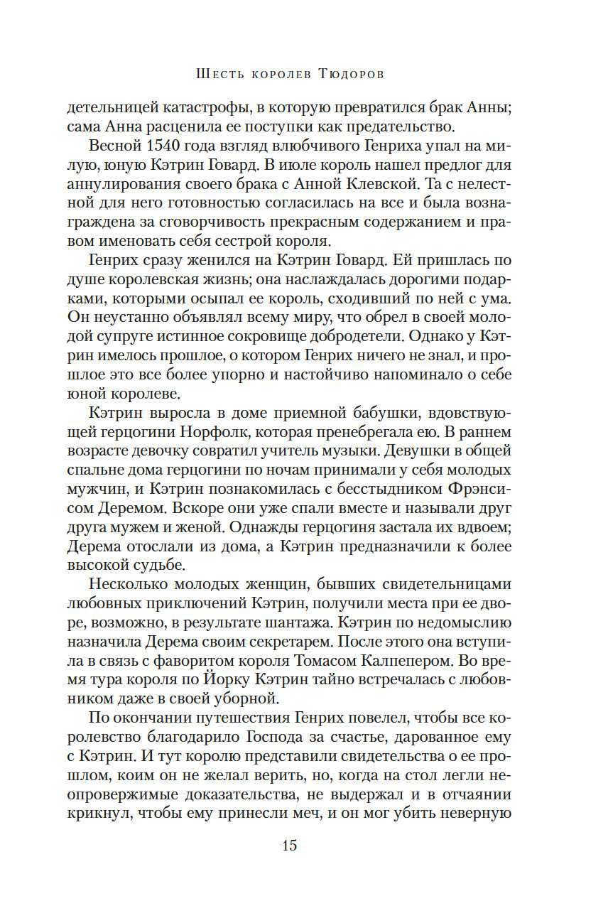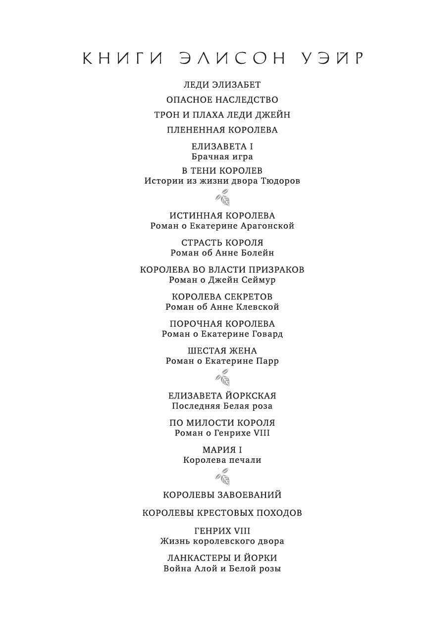 История пишется не только на полях сражений. Зачастую важные решения принимаются в тихих дворцовых покоях, где тенями скользят приближенные сильных мира сего, перешептываясь, подглядывая, интригуя. И если короля играет свита, то за королевой наблюдает весь двор... В течение тридцати шести лет в Англии продолжалось блистательное и вместе с тем шаткое правление Генриха VIII Тюдора. За это время рядом с ним на троне сменились шесть королев, судьбы которых сложились по большей части трагически. У каждой жены грозного монарха были свои секреты и свои конфиденты. Одни искренне любили свою королеву и верно служили ей, другие лгали, шпионили и в конечном счете предали ее...