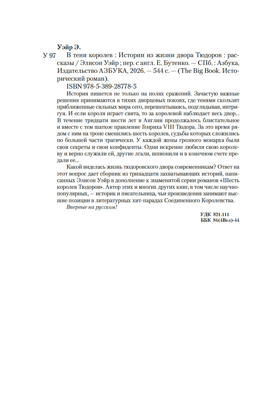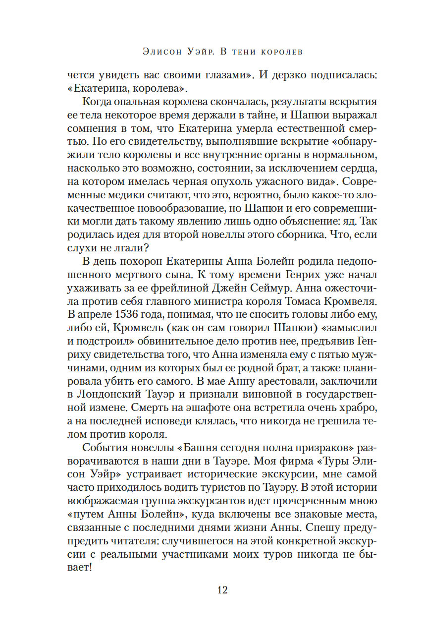 Какой виделась жизнь тюдоровского двора современникам? Ответ на этот вопрос дает сборник из тринадцати захватывающих историй, написанных Элисон Уэйр в дополнение к знаменитой серии романов "Шесть королев Тюдоров". Автор этих и многих других книг, в том числе научно-популярных, – историк и писательница, чьи произведения занимают высшие позиции в литературных хит-парадах Соединенного Королевства.