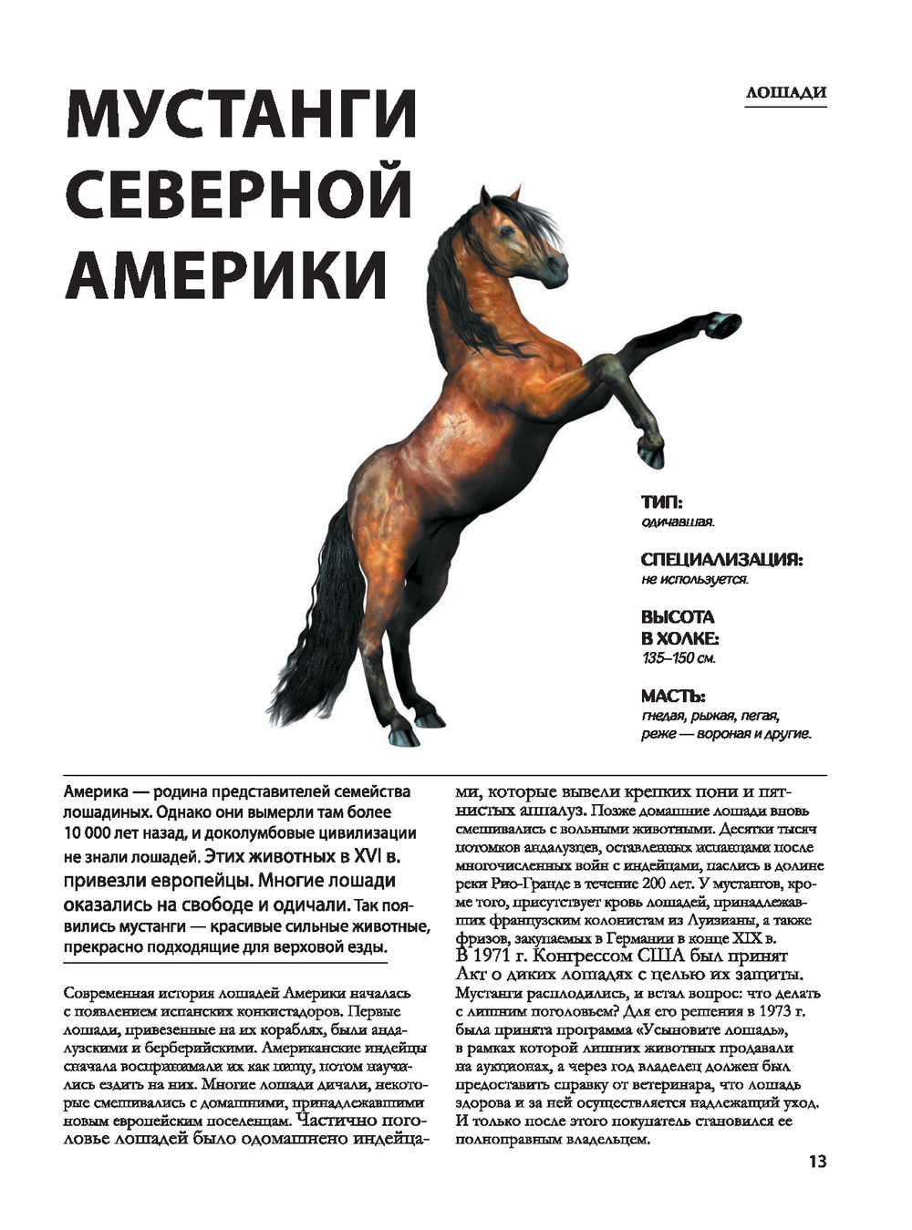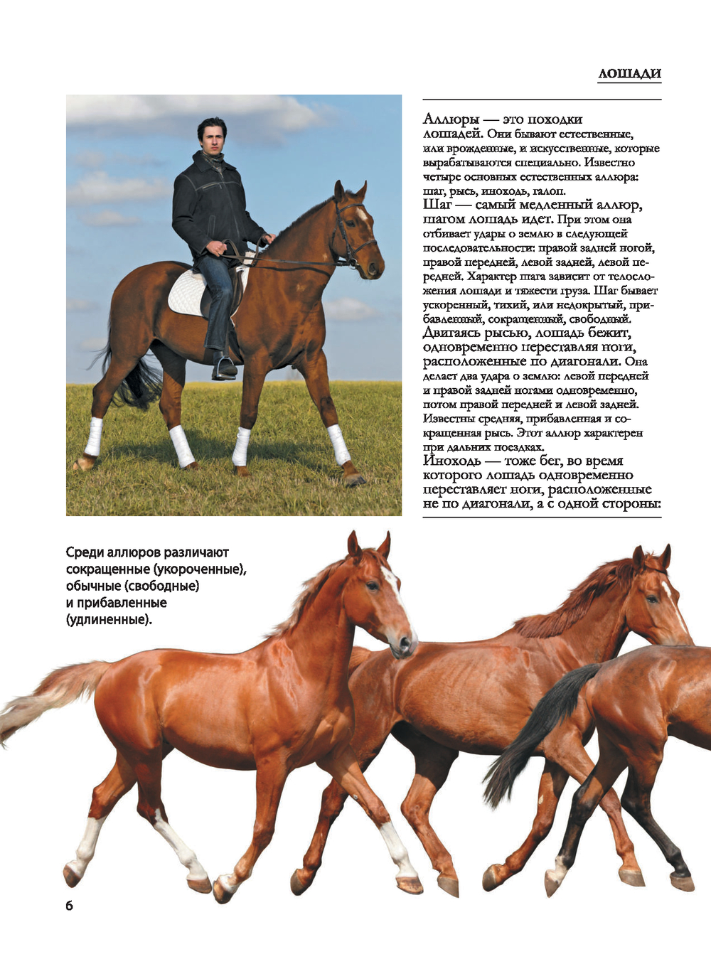 Данное издание поможет вам получить ответ на этот и многие другие вопросы, связанные со специализацией лошадей, разнообразием их типов и групп, особенностями мастей и аллюров, нрава и темперамента, а также скаковыми и рабочими качествами. А на сотнях зрелищных фотографий вы сможете рассмотреть в эффектных ракурсах неукротимых мустангов, быстроногих ахалтекинцев, послушных андалузов, добронравных лузитано, огромных першеронов, выносливых шагия-арабов, нарядных орловских рысаков и представителей многих других пород.