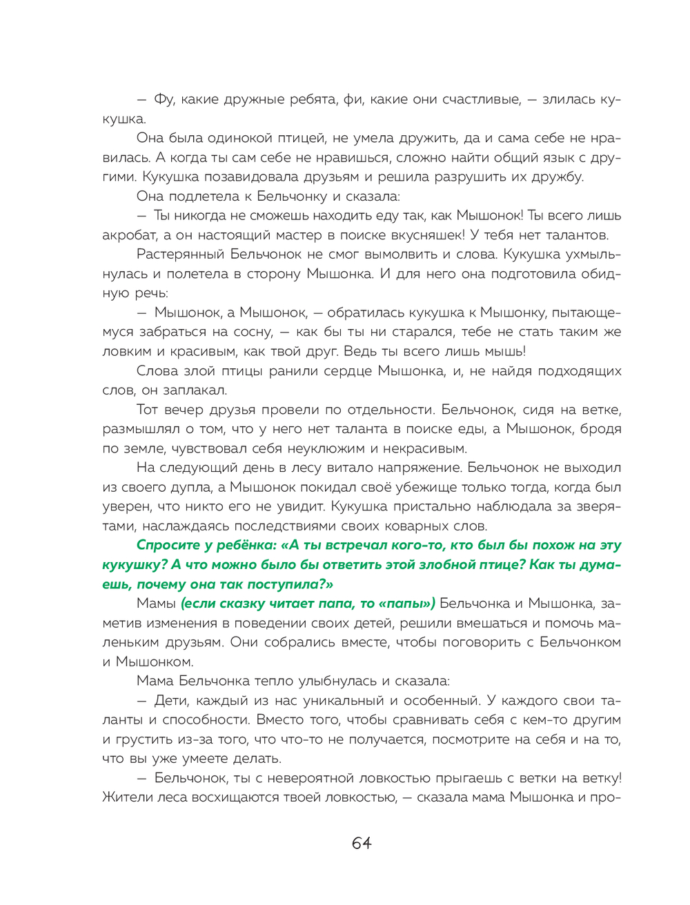 После чтения дети научатся преодолевать страхи, принимать себя и открывать новые таланты. Сказки помогут родителю воспитать внутреннюю опору ребенка и повысить его уверенность в своих силах. Книга подходит для семейного чтения. Благодаря крупному формату и ярким большим иллюстрациям ее можно подарить дошкольникам, первоклассникам, молодым родителям, друзьям и родственникам.