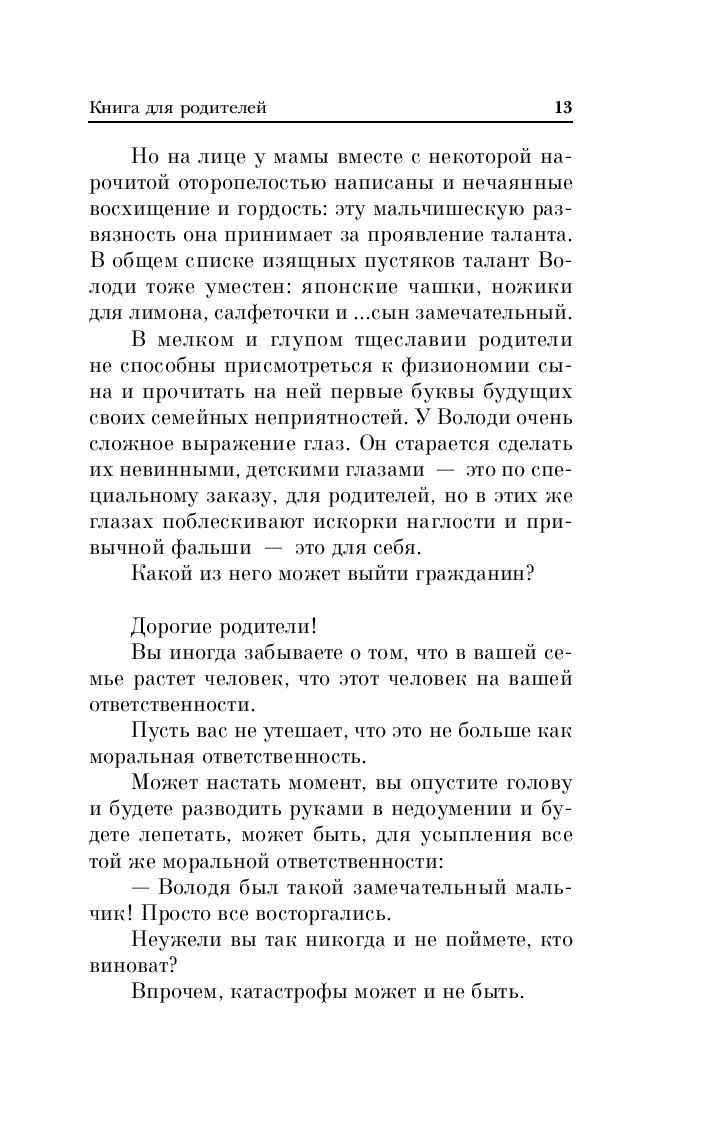Антон Семенович Макаренко – выдающийся советский педагог и писатель, автор одного из важнейших трудов о семейном воспитании – "Книга для родителей". Это практическое руководство по созданию гармоничных отношений в семье и воспитанию детей в атмосфере уважения, ответственности и трудолюбия. Макаренко пишет ясно и убедительно. Здесь – педагогика здравого смысла, сила личного примера и умение находить подход к каждому ребенку. Книга будет полезна всем, кто стремится к воспитанию счастливых и самостоятельных личностей, построению крепкой семьи и созданию атмосферы взаимопонимания.
