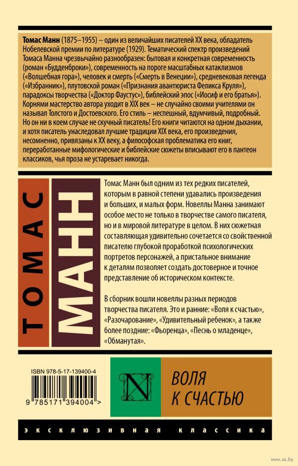 Томас Манн был одним из тех редких писателей, которым в равной степени удавались произведения и больших, и малых форм. Новеллы Манна занимают особое место не только в творчестве самого писателя, но и в мировой литературе в целом. В них сюжетная составляющая удивительно сочетается со свойственной писателю глубокой проработкой психологических портретов персонажей, а пристальное внимание к деталям позволяет создать достоверное и точное представление об историческом контексте.