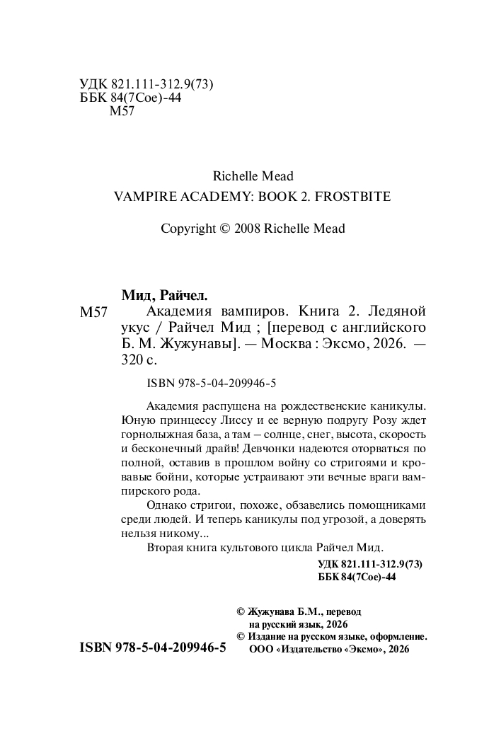 Условия бонусной программы| Название в оригинале | Vampire Academy. Frostbite |