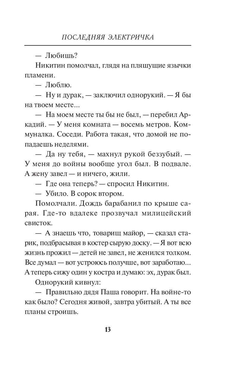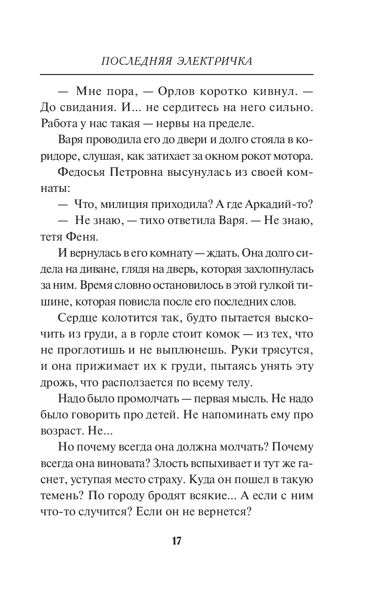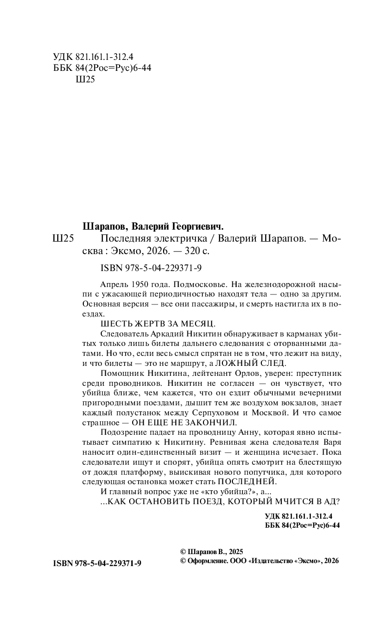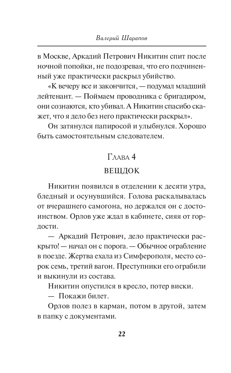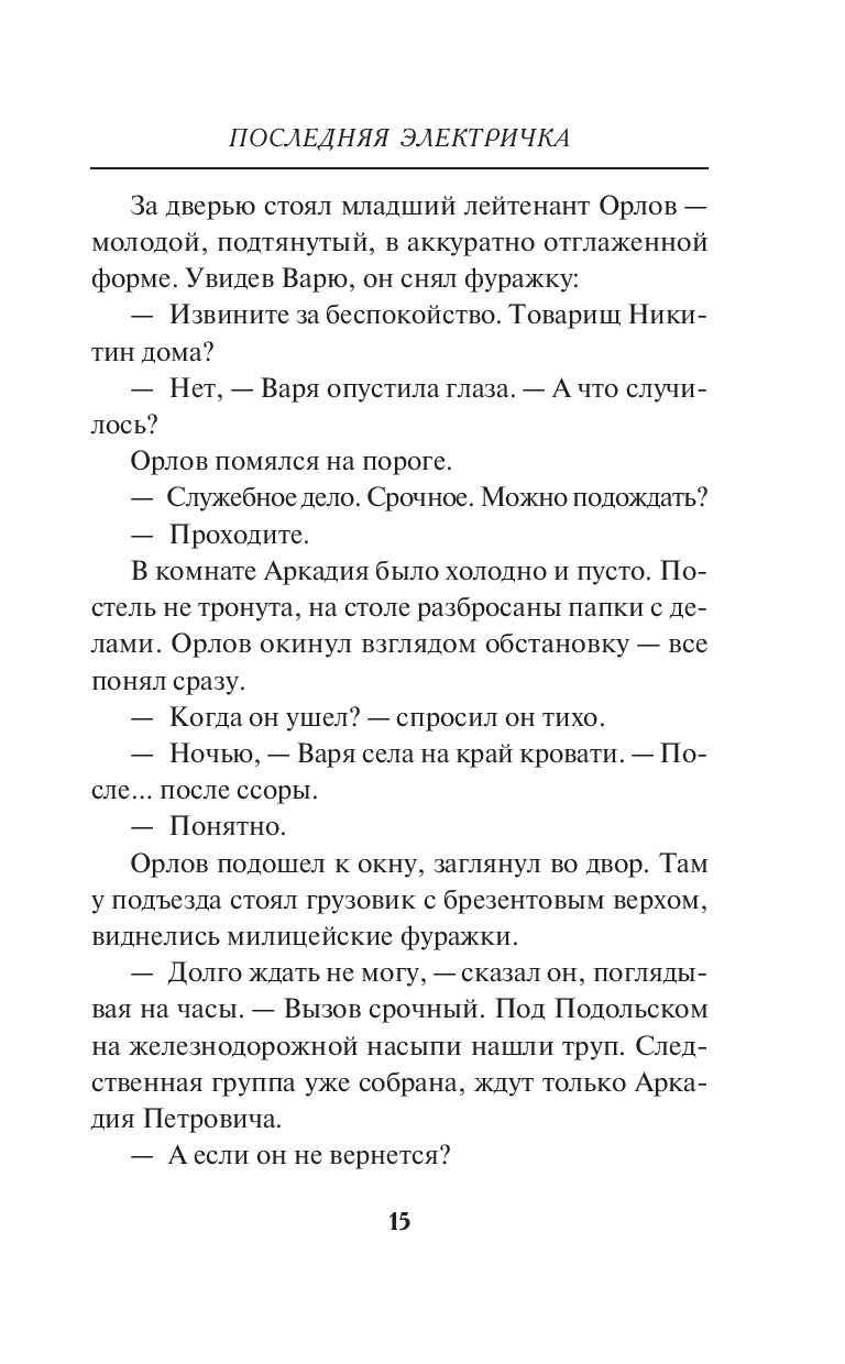Помощник Никитина, лейтенант Орлов, уверен: преступник среди проводников. Никитин не согласен – он чувствует, что убийца ближе, чем кажется, что он ездит обычными вечерними пригородными поездами, дышит тем же воздухом вокзалов, знает каждый полустанок между Серпуховом и Москвой. И что самое страшное —