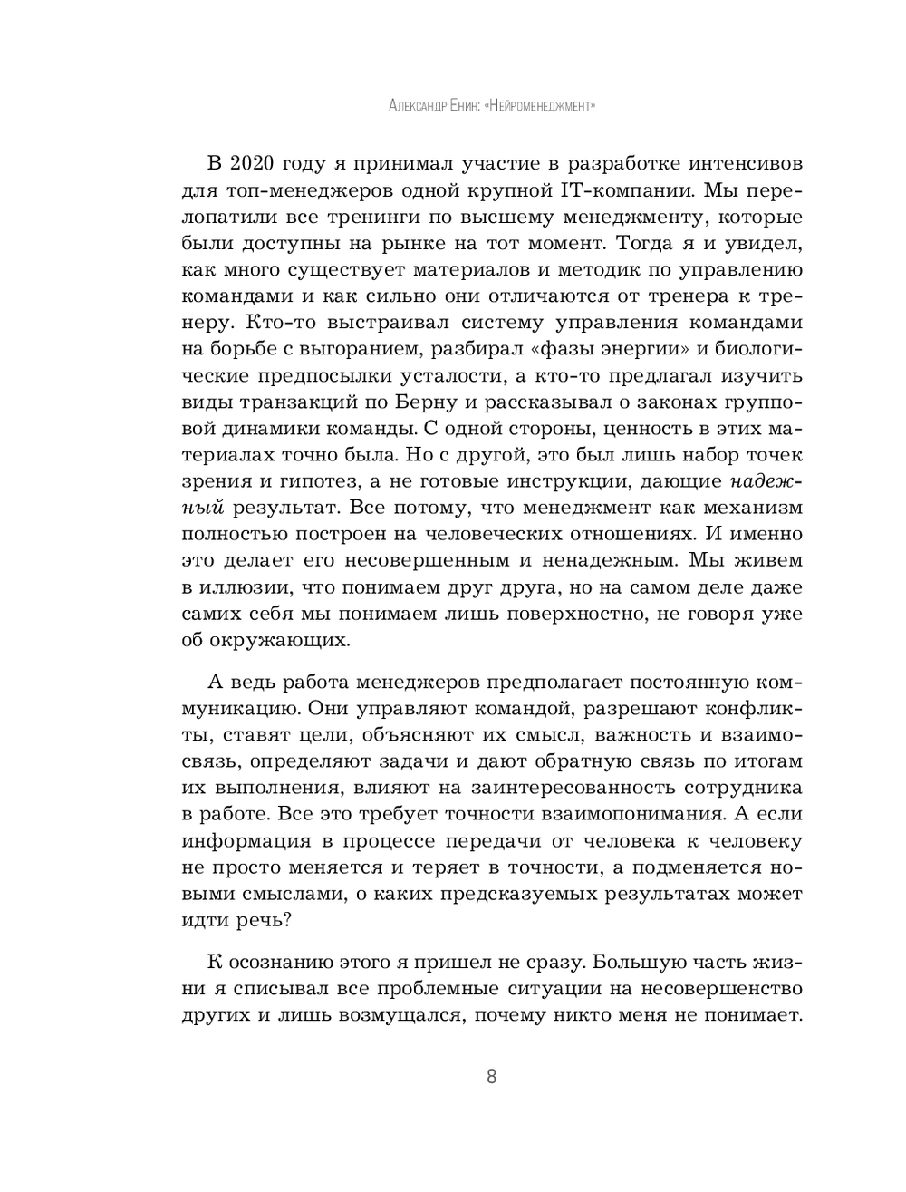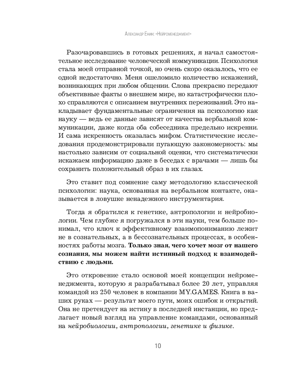 Нейроменеджмент – это система, основанная на нейробиологии, антропологии, генетике и физике. Она позволяет определять реальные источники мотивации, выстраивать доверительные отношения и управлять без манипуляций. Александр объясняет, как развивать эмоциональный интеллект, удерживать талантливых сотрудников и создавать для них нематериальную ценность.