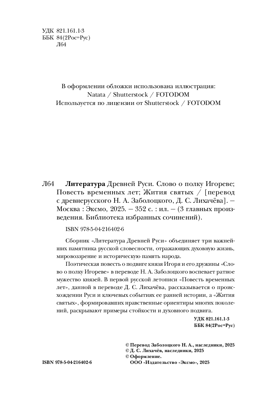 Сборник "Древнерусская литература" объединяет три важнейших памятника русской словесности, отражающих духовную жизнь, мировоззрение и историческую память народа.