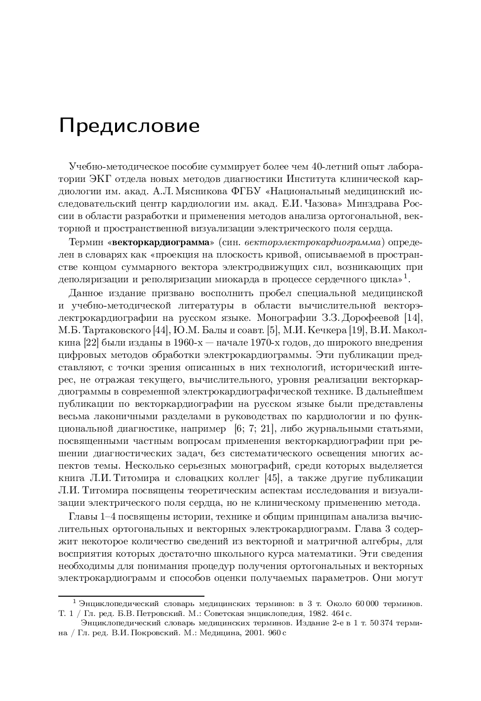 В книге представлены современные данные о вычислительной векторэлектрокардиографии методе пространственной визуализации движения суммарного электрического вектора сердца во время сердечного цикла. В настоящее время такая визуализация производится из 12 общепринятых отведений электрокардиограммы путем вычислительных процедур в реальном времени. Описаны наиболее широко применяемые вычислительные процедуры.