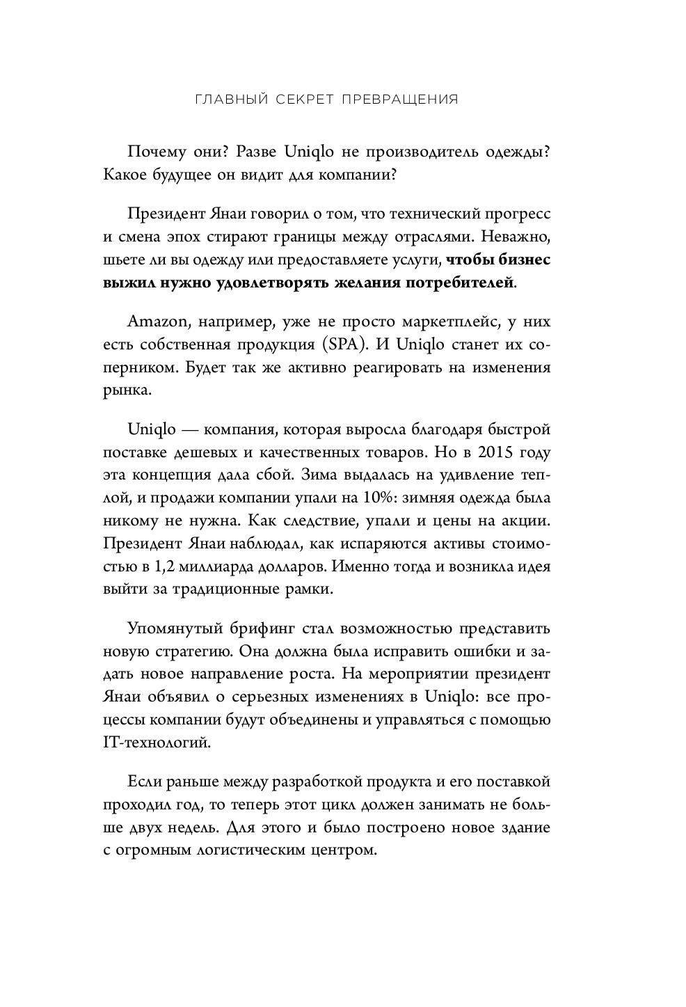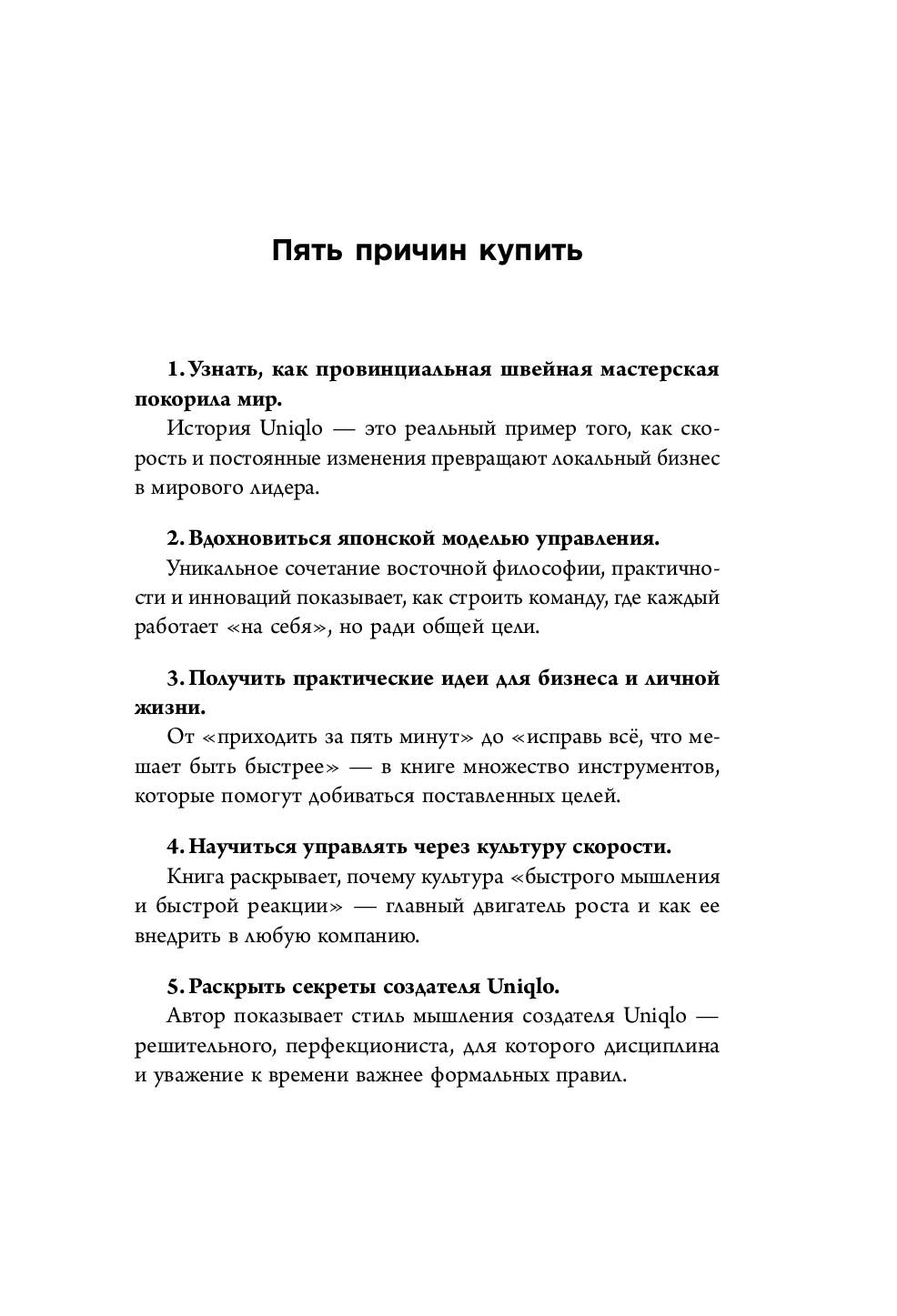 Uniqlo – не просто бренд, а культурное измерение с миллионами поклонников. И эта книга раскрывает ту философию, которая за пару десятилетий превратила небольшую японскую фирму в мирового лидера индустрии.