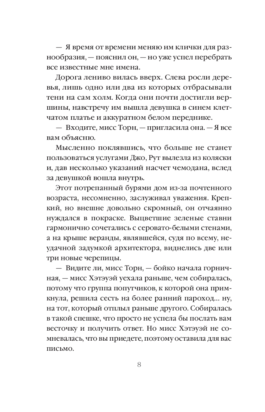 Рут начинает погружаться в жизнь тихой сельской местности, знакомится с загадочной мисс Эйнсли, и с молодым человеком Карлом Уиндилдом. Карл тоже когда-то был репортёром редакции газеты "Геральд", где работает Рут, но из-за проблем со зрением он временно не может работать, и по рекомендации окулиста должен отдохнуть полгода, а главный редактор газеты посоветовал ему поехать вслед за Рут.