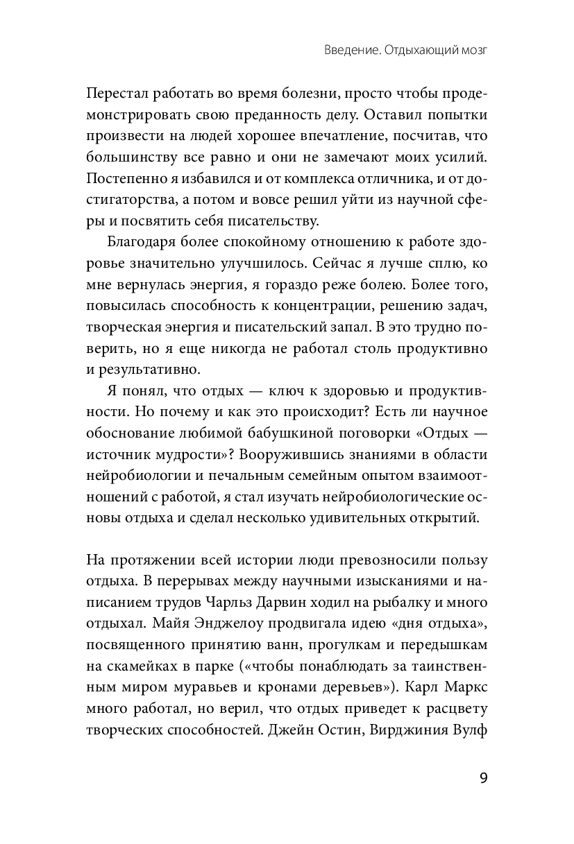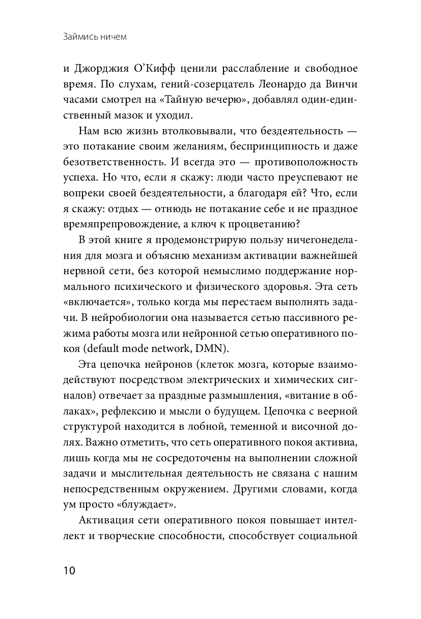 Когда в последний раз вы позволяли себе по-настоящему ничего не делать – без телефона, дел и списков задач? Мы привыкли считать отдых слабостью, а постоянную занятость – признаком успеха. Но нейронаука говорит об обратном: мозгу необходимы паузы. Нейробиолог Джозеф Джебелли, сам когда-то страдавший от трудоголизма, доказывает: прогулка, медитация и витание в облаках – не роскошь, а условие счастливой и продуктивной жизни. В книге – исследования, реальные истории и практические советы.