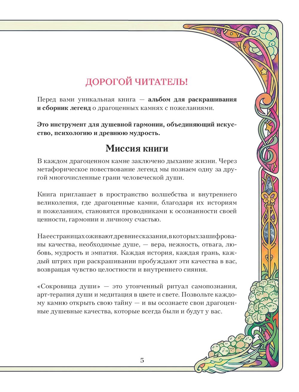 Сокровища Души. Медитативная книга-раскраска с легендами и пожеланиями от каждого драгоценного камня