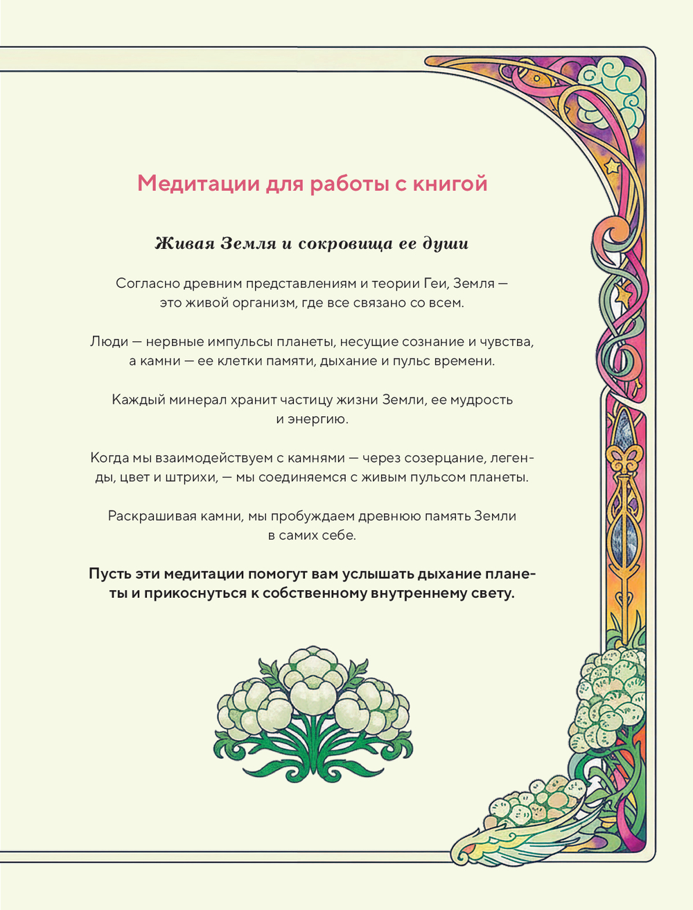 В каждом драгоценном камне заключено дыхание жизни. Через метафорическое повествование легенд мы познаем одну за другой многочисленные грани человеческой души. На страницах этой книги-раскраски оживают древние сказания, в которых зашифрованы качества, необходимые душе – вера, нежность, отвага, любовь, мудрость и эмпатия. В этом пространстве волшебства истории и пожелания драгоценных камней станут проводниками к осознанности и настоящей гармонии с собой.