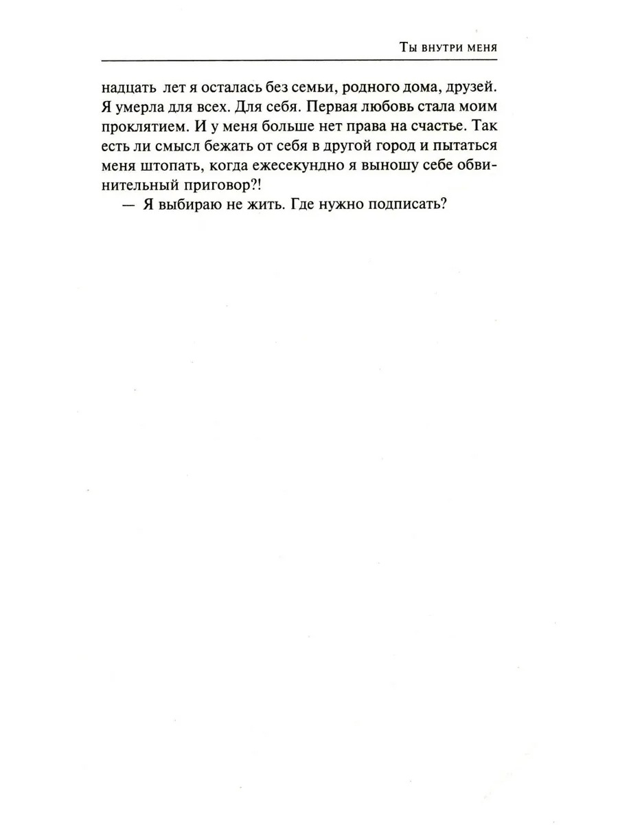 Кира Дружинина, которой я была до 18 лет, умерла. Ее больше нет. Теперь есть Аделина Потапова. Я восстала из ада. У меня новая внешность, имя и в моей жизни появился человек, который каждый день исцеляет мою душу от боли, окружая меня своей безусловной любовью и даря шанс снова быть счастливой.