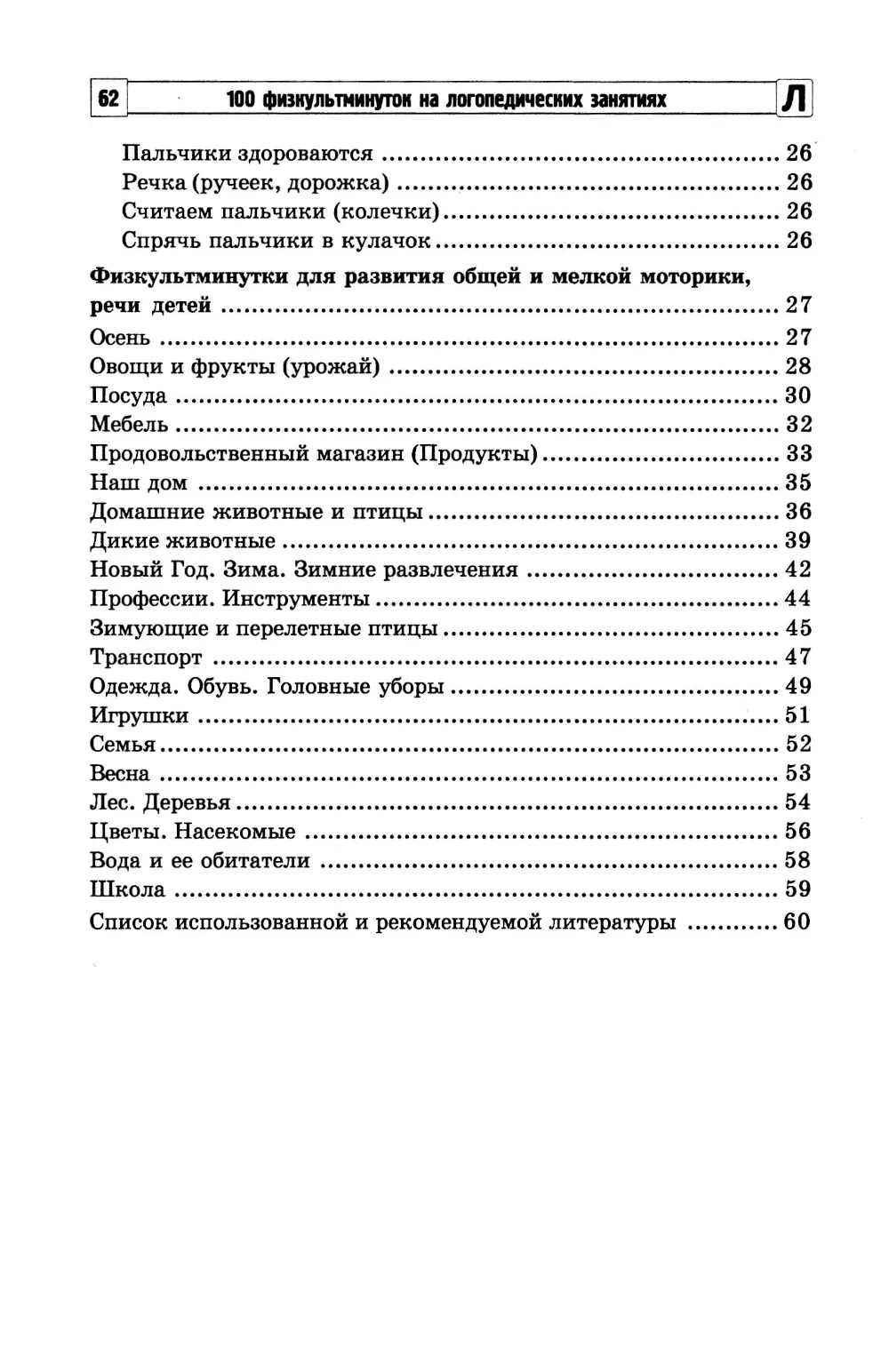 Данное пособие представляет собой практическое руководство для занятий с детьми 5-7 лет. Оно включает 40 упражнений для развития мелкой моторики (тонких движений пальцев рук) и 100 физкультминуток для развития общей моторики и речи детей.