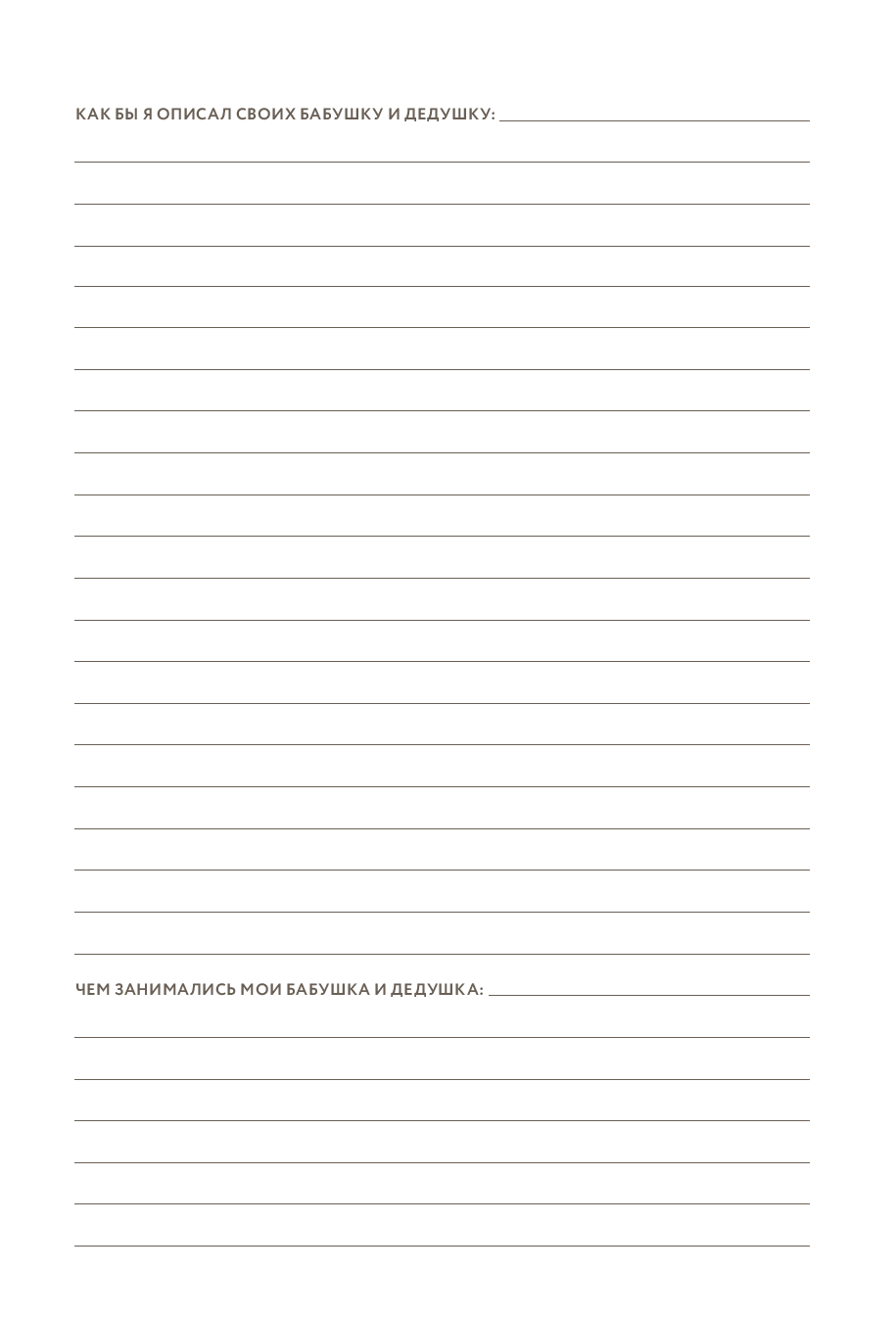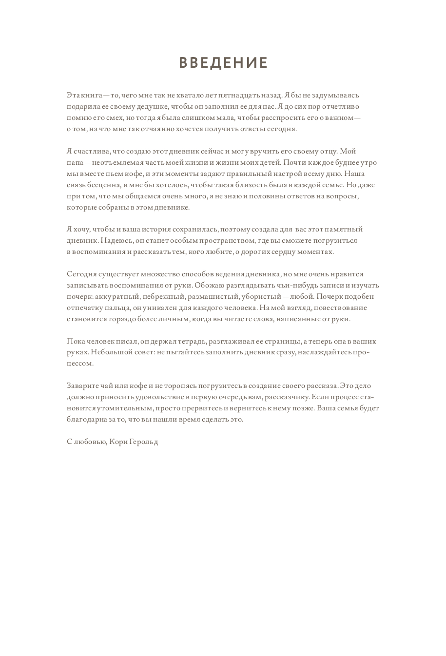 Дневник "Дедушкина история" поможет дедушкам всех возрастов сохранить самые важные воспоминания и поделиться ими со своей семьей. Эта особенная книга содержит продуманные вопросы и пространство для размышлений и личных записей. Настоящая рукописная сокровищница воспоминаний дедушки, жизненной мудрости и любви.