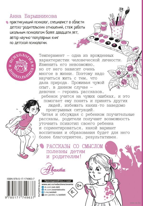 Терапевтические рассказы психолога Анны Барышниковой обращены к детям-дошкольникам и их заботливым родителям. Будничные заботы, ежедневные проблемы не дают нам возможность отслеживать каждый шаг своего ребенка, но очень важно "держать руку на пульсе", разговаривать с детьми, постоянно контролировать их душевное состояние. Эта книга поможет разобраться в ребенке, обсудить сложные случаи и поступки, не упустить время и предупредить возможные проблемы.