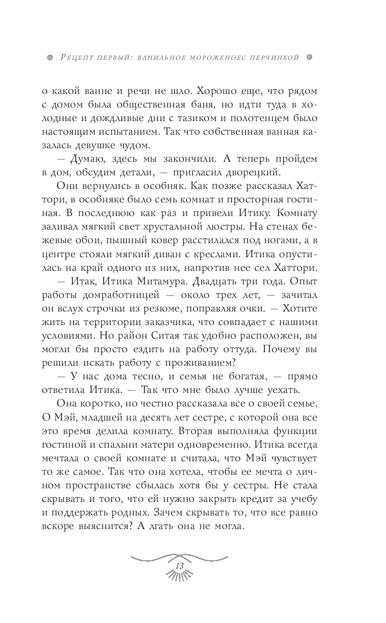 Итика Митамура, которую пригласили в дом Синономэ в качестве кухарки, знает толк в настоящей еде и умеет привносить в нее ту изюминку, которая пробуждает к жизни даже камни, не говоря уже гениальных детективах.