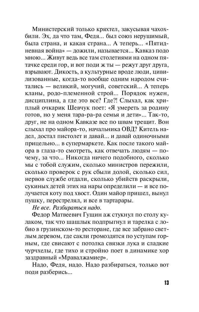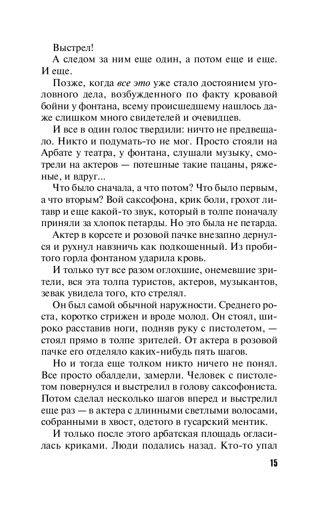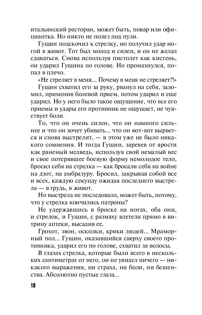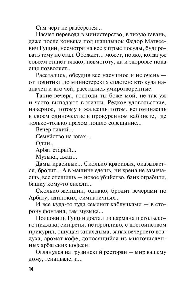 Катя Петровская – криминальный обозреватель пресс-центра ГУВД – разочарована: никакой загадки в новом деле нет. Роман Пепеляев расстрелял девять человек в центре города, потому что сошел с ума. Но почему после устроенной бойни на глазах целой толпы, он не испытывает никаких эмоций? Ни удовлетворения, ни раскаяния, ни апатии. И настолько равнодушен к своей судьбе, что, даже находясь в психиатрической клинике, продолжает кидаться на людей? Причем, агрессию вызывают молодые люди определенной внешности. Катя и полковник Гущин, не верящий ни в бога, ни в черта, явственно видят здесь некую чертовщину. И, похоже, не без веских оснований…