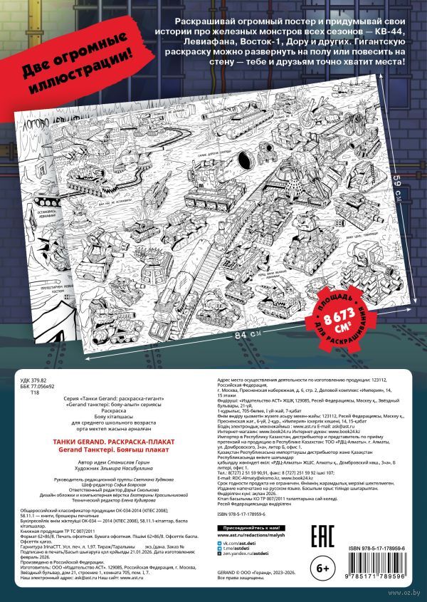 Раскрашивай огромный постер и придумывай свои истории про железных монстров всех сезонов – КВ-44, Левиафана, Восток-1, Дору и других. Гигантскую раскраску можно развернуть на полу или повесить на стену – тебе и друзьям точно хватит места!