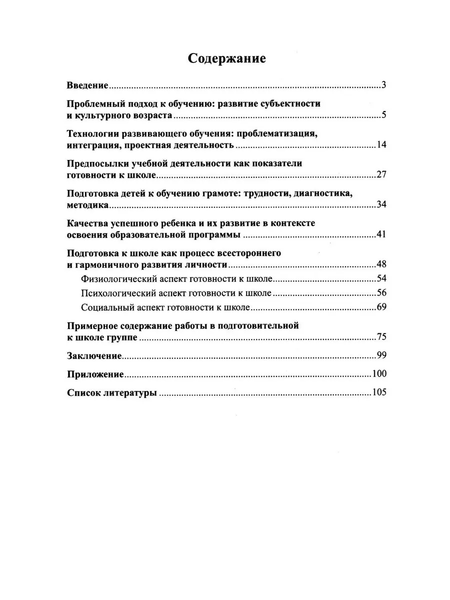 Пособие посвящено проблеме подготовки детей к школе в контексте ее понимания как готовности к развитию. Раскрывается сущность проблемного подхода к обучению, анализируются предпосылки учебной деятельности как показатели готовности к школе. Излагается взгляд на проблему подготовки к школе как процесс всестороннего и гармоничного развития личности, подготовки детей к обучению грамоте.