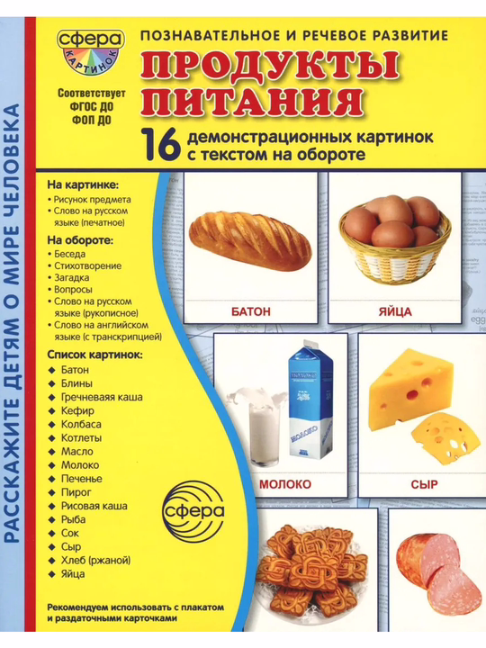 Откройте перед ребёнком разнообразие продуктов питания с нашим комплектом! Он создан специально для дошкольников и младших школьников, чтобы сделать процесс обучения интересным и познавательным.