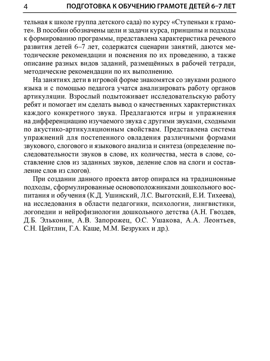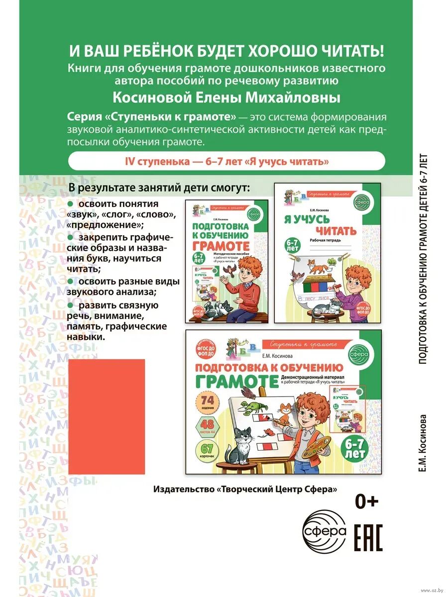 В комплект пособия входят рабочая тетрадь "Я учусь читать", специально разработанная для детей 6-7 лет, а также демонстрационный материал, который помогает сделать обучение более наглядным и увлекательным. Методическое пособие предназначено для поддержки педагогов в проведении групповых и подгрупповых занятий в подготовительной к школе группе детского сада.