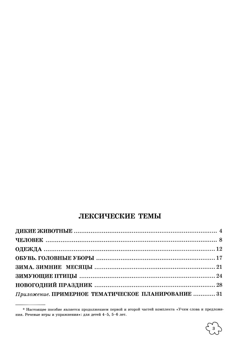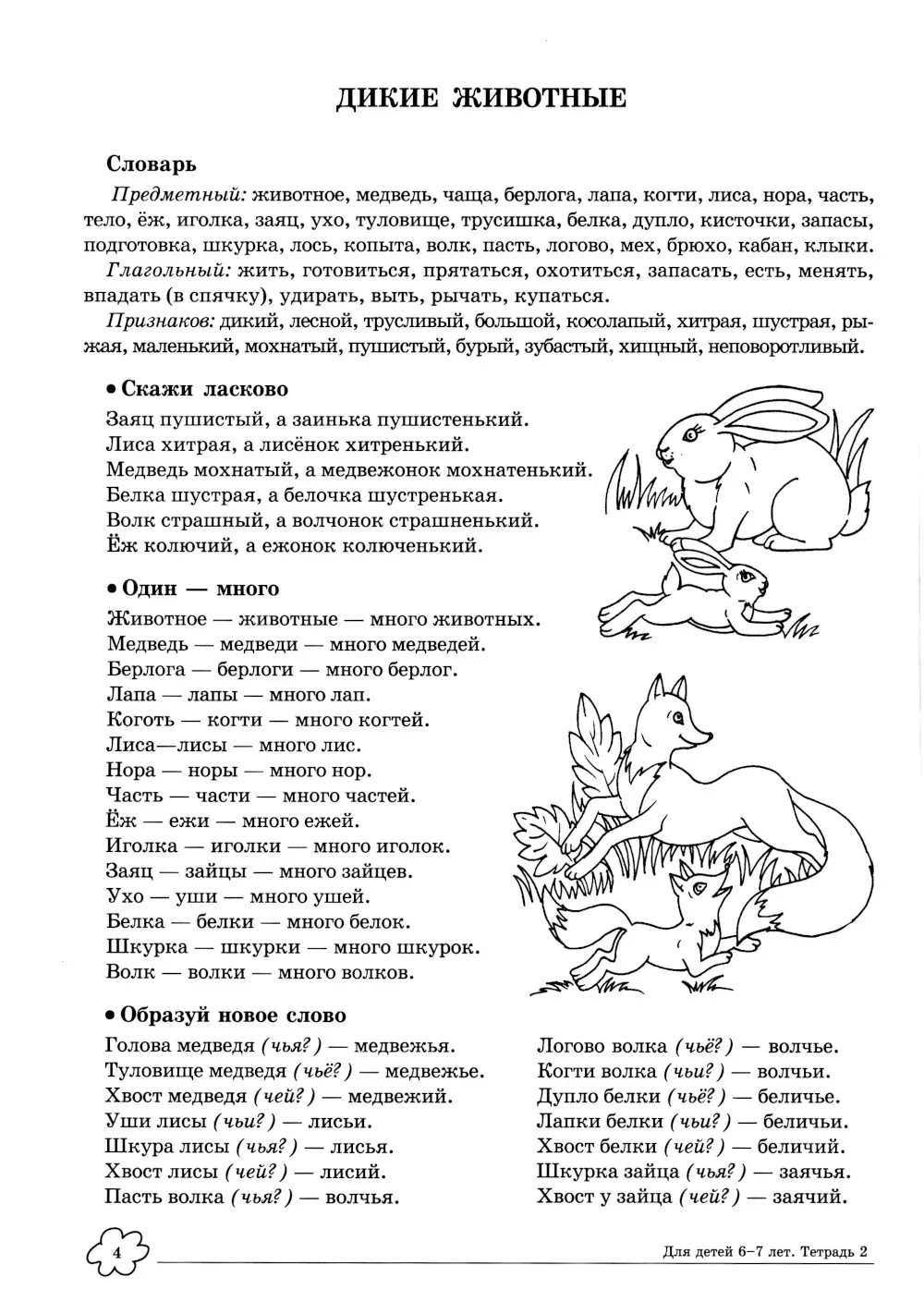 Настоящее пособие содержит материал по лексическим темам, который направлен на развитие лексико-грамматического строя речи дошкольников 6-7 лет. Это и словесные игры, и рекомендации педагогам по развитию речи детей, и упражнения для развития мелкой моторики, мышления, зрительного внимания и многое другое, что в конечном итоге поможет сделать речь ребёнка богаче и разнообразнее.