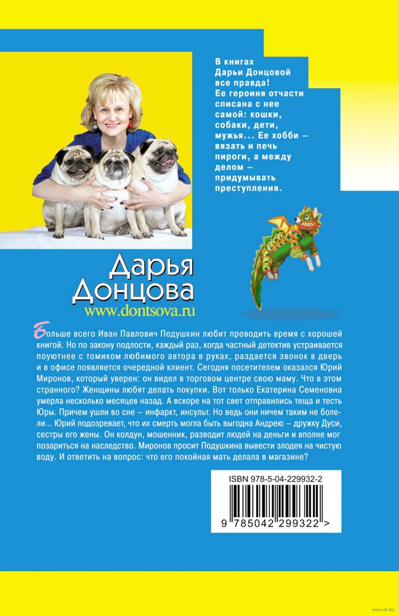 Больше всего Иван Павлович Подушкин любит проводить время с хорошей книгой. Но по закону подлости, каждый раз, когда частный детектив устраивается поуютнее с томиком любимого автора в руках, раздается звонок в дверь, и в офисе появляется очередной клиент. Сегодня посетителем оказался Юрий Миронов, который уверен: он видел в торговом центре свою маму. Что в этом странного? Женщины любят делать покупки. Вот только Екатерина Семеновна умерла несколько месяцев назад. А вскоре на тот свет отправились теща и тесть Юры. Причем ушли во сне – инфаркт, инсульт. Но ведь они ничем таким не болели… Юрий подозревает, что их смерть могла быть выгодна Андрею – дружку Дуси, сестры его жены. Он колдун, мошенник, разводит людей на деньги, и вполне мог позарится на наследство. Миронов просит Подушкина вывести злодея на чистую воду. И ответить на вопрос: что его покойная мать делала в магазине?