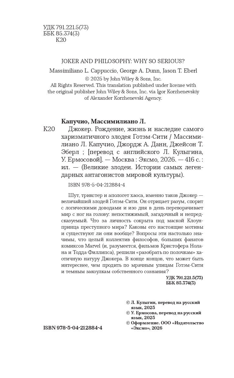 Условия бонусной программы| Название в оригинале | Joker and Philosophy: Why So Serious? |