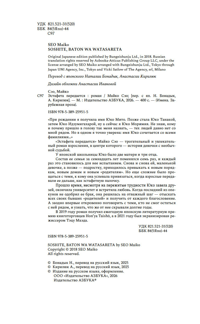 "Эстафета передается" Майко Сэо – трогательный и увлекательный роман взросления, в центре которого – история девочки с необычной судьбой.