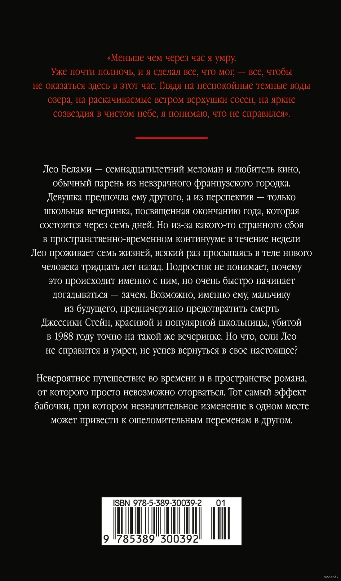 Лео Белами – семнадцатилетний меломан и любитель кино, обычный парень из невзрачного французского городка. Девушка предпочла ему другого, а из перспектив – только школьная вечеринка, посвященная окончанию года, которая состоится через семь дней. Но из-за какого-то странного сбоя в пространственно-временном континууме в течение недели Лео проживает семь жизней, всякий раз просыпаясь в теле нового человека тридцать лет назад. Подросток не понимает, почему это происходит именно с ним, но очень быстро начинает догадываться – зачем. Возможно, именно ему, мальчику из будущего, предначертано предотвратить смерть Джессики Стейн, красивой и популярной школьницы, убитой в 1988 году на точно такой же вечеринке. Но что, если Лео не справится и умрет, не успев вернуться в свое настоящее?