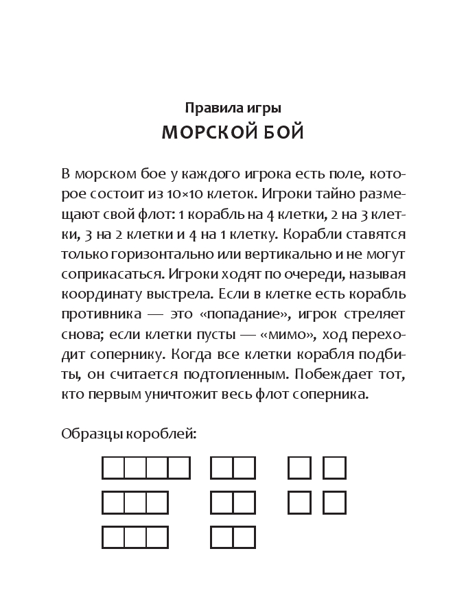 Внутри собраны классические игры на бумаге – простые, увлекательные и проверенные временем. Они не требуют ничего лишнего: только ручку, немного воображения и хорошую компанию.
